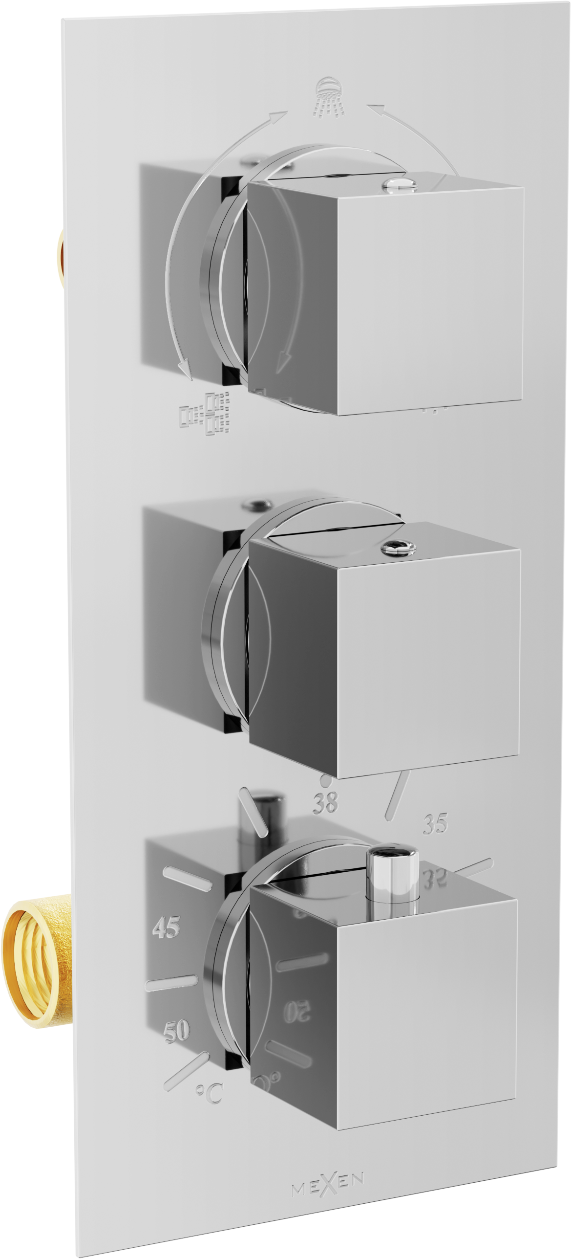 Mexen Cube θερμοστατική μπαταρία μπανιέρας-ντους 3 εξόδων, χρώμιο - 77503-00