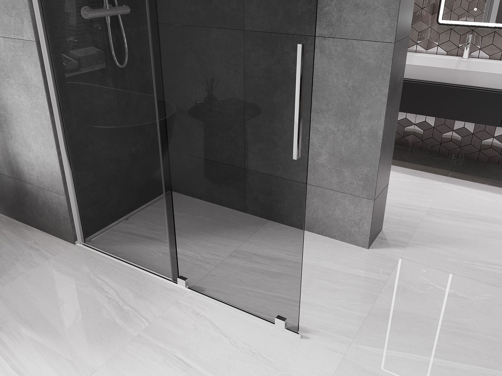 Mexen Velar Συρόμενη καμπίνα ντους Walk-in 140 x 200 cm, γραφίτης 8 mm, χρώμιο