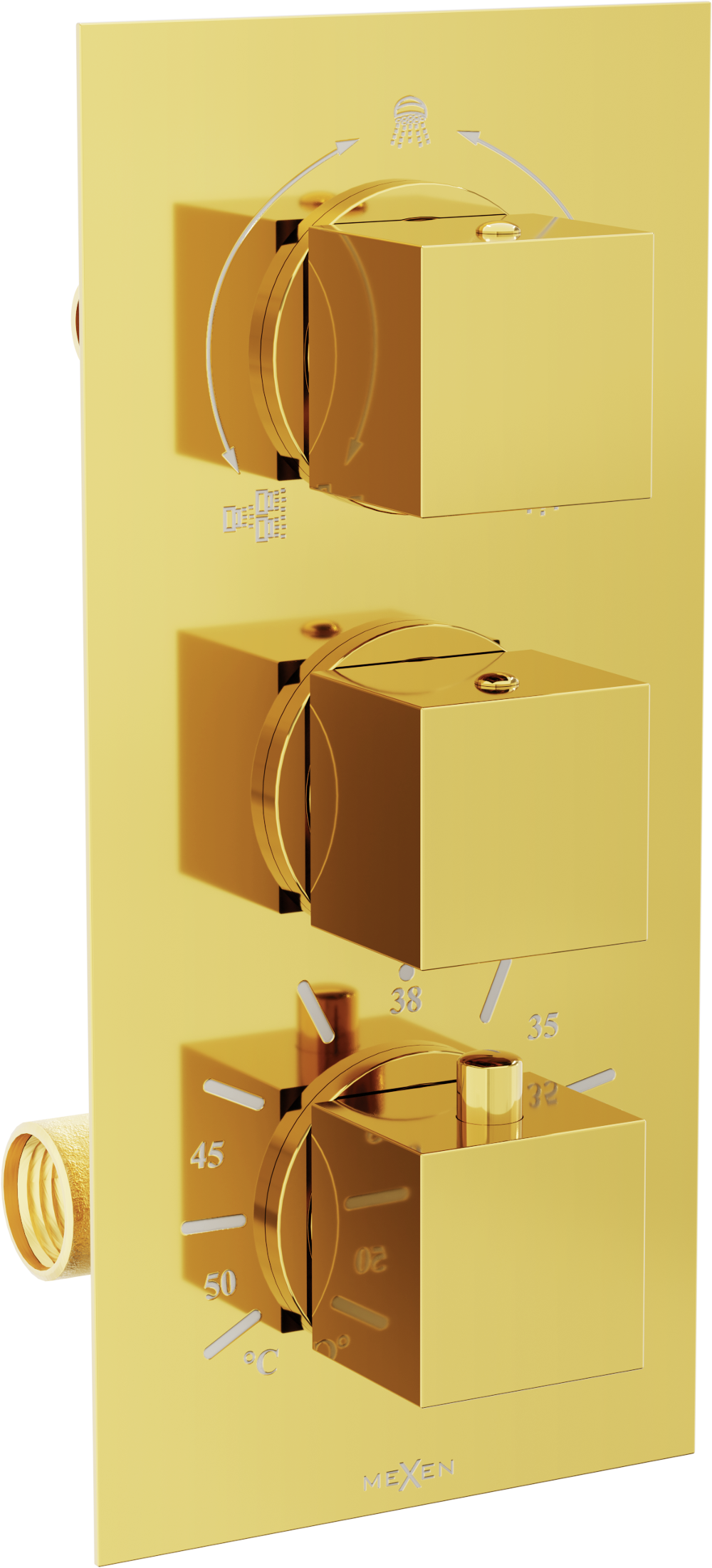 Mexen Cube Θερμοστατική μπαταρία μπανιέρας-ντους 3 εξόδων, χρυσή - 77503-50