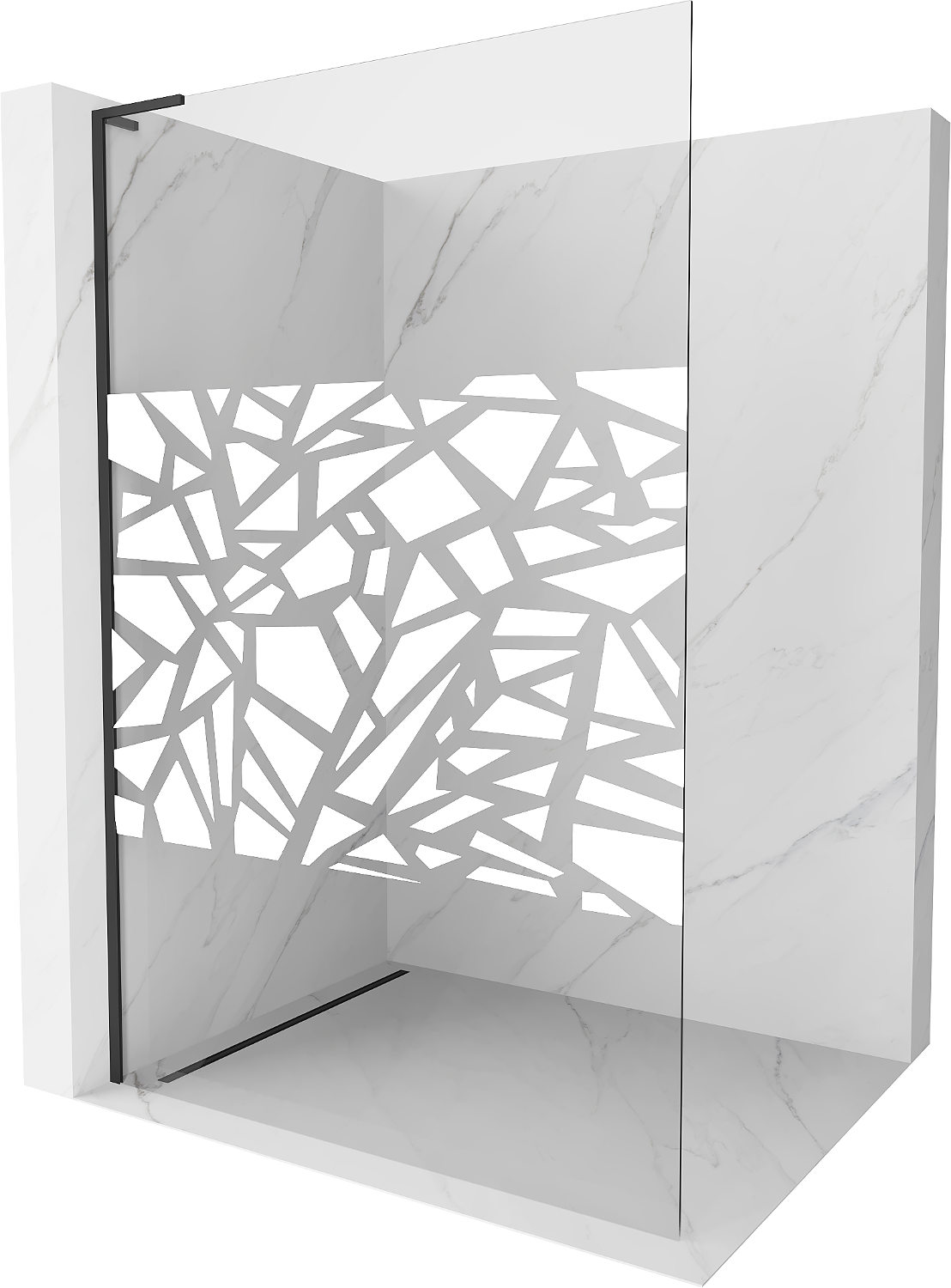 Mexen Kioto L Πάνελ ντους Walk-in 80 x 200 cm, λευκό μοτίβο, μαύρο - 800-080-103-70-85