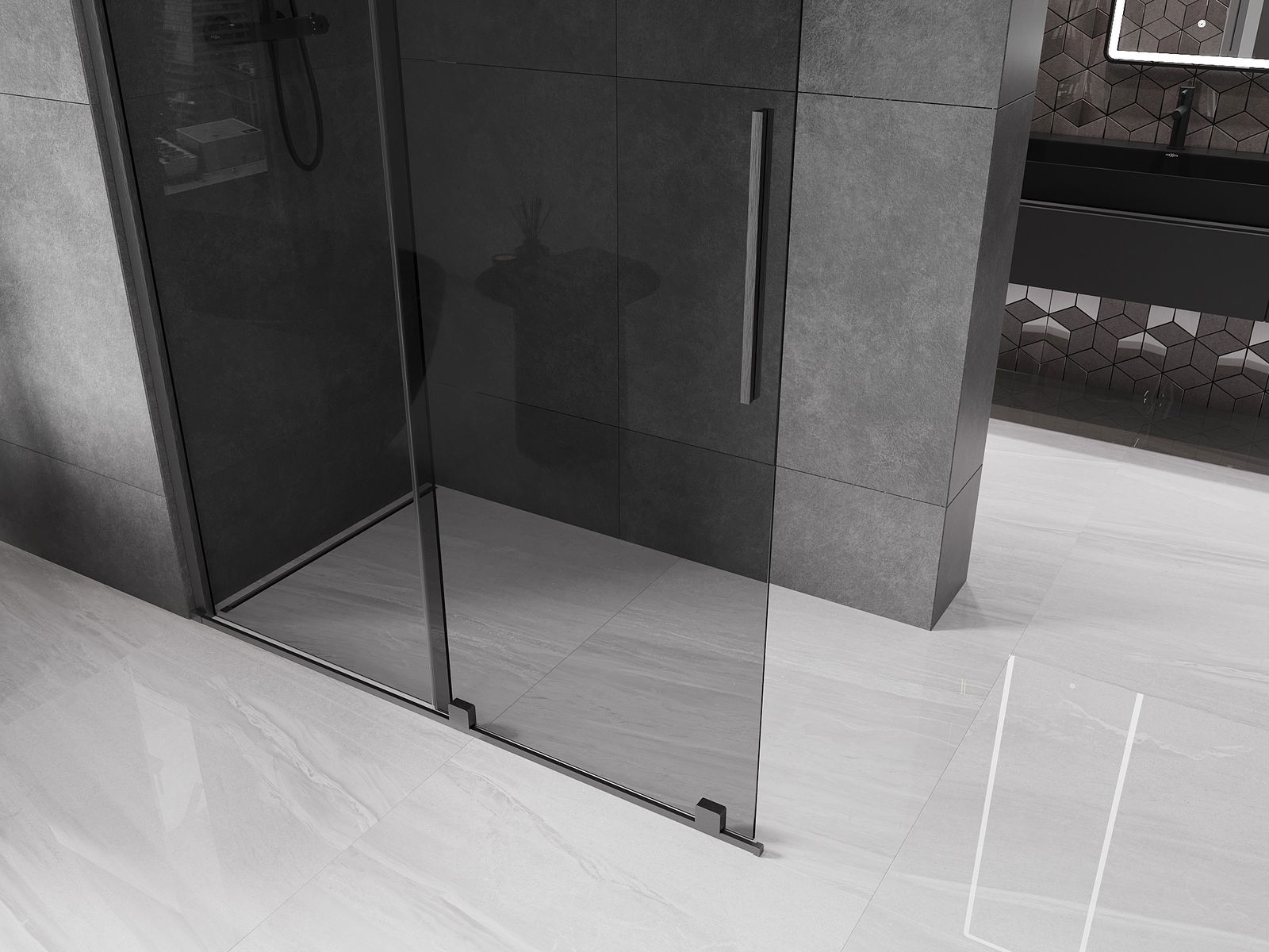 Mexen Velar συρόμενος τοίχος ντους Walk-in 130 x 200 cm, γραφίτης 8 mm, γκρι όπλο