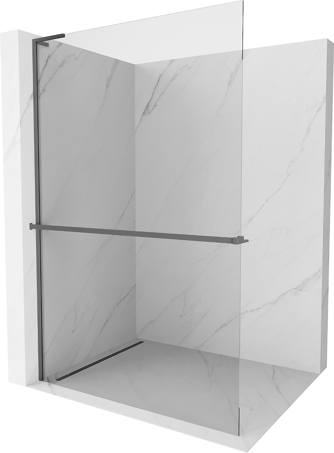 Mexen Kioto+ L Πάνελ ντους με ράφι Walk-in 55 x 200 cm, διαφανές, σε απόχρωση μέταλλου