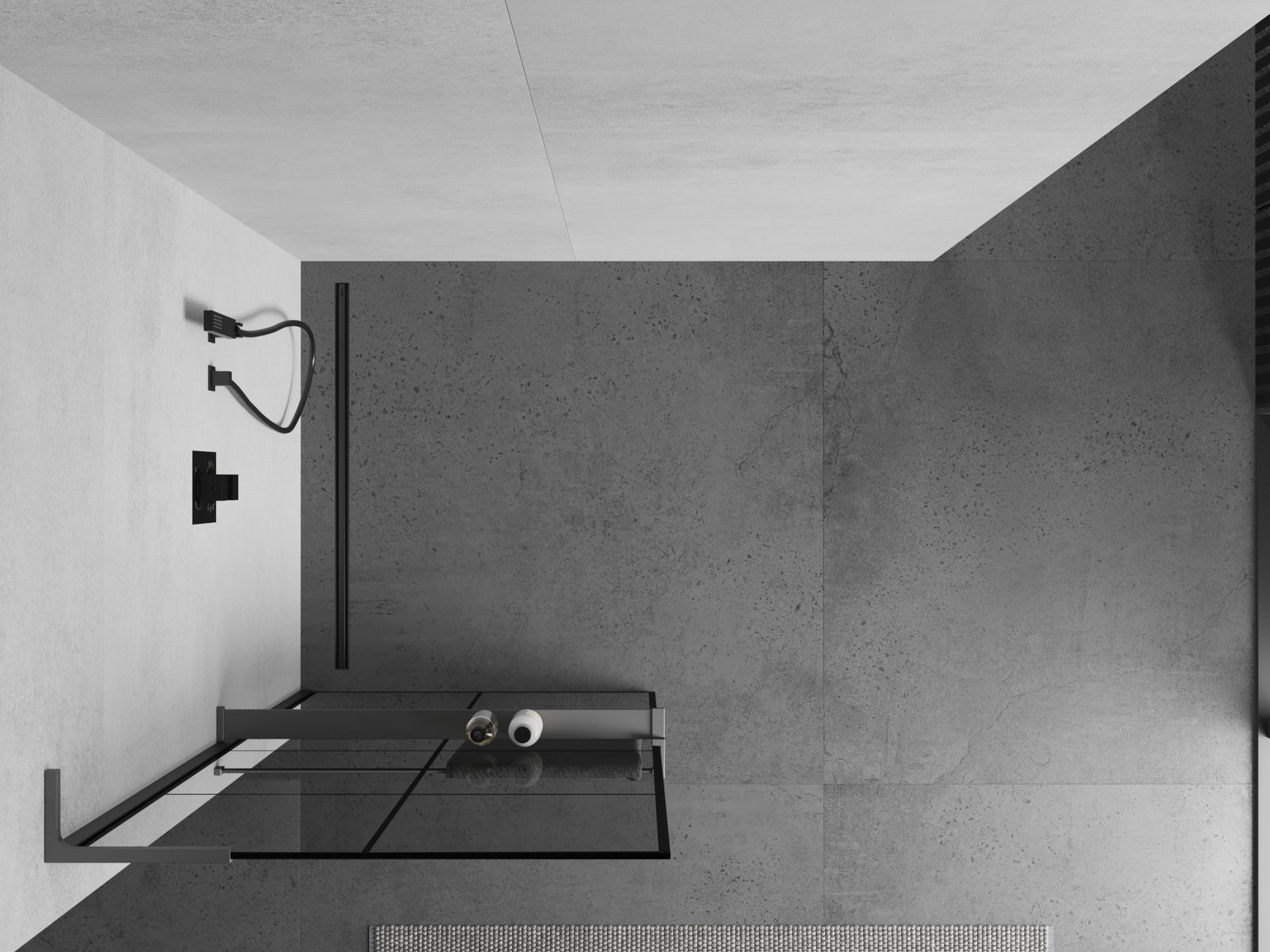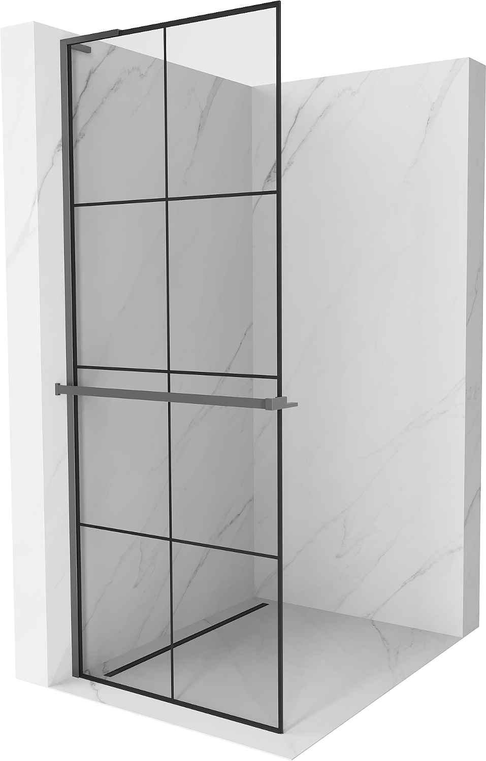 Mexen Kioto+ L Πάνελ ντουζιέρας με ράφι Walk-in 90 x 200 cm, μαύρο πλέγμα, gun metal