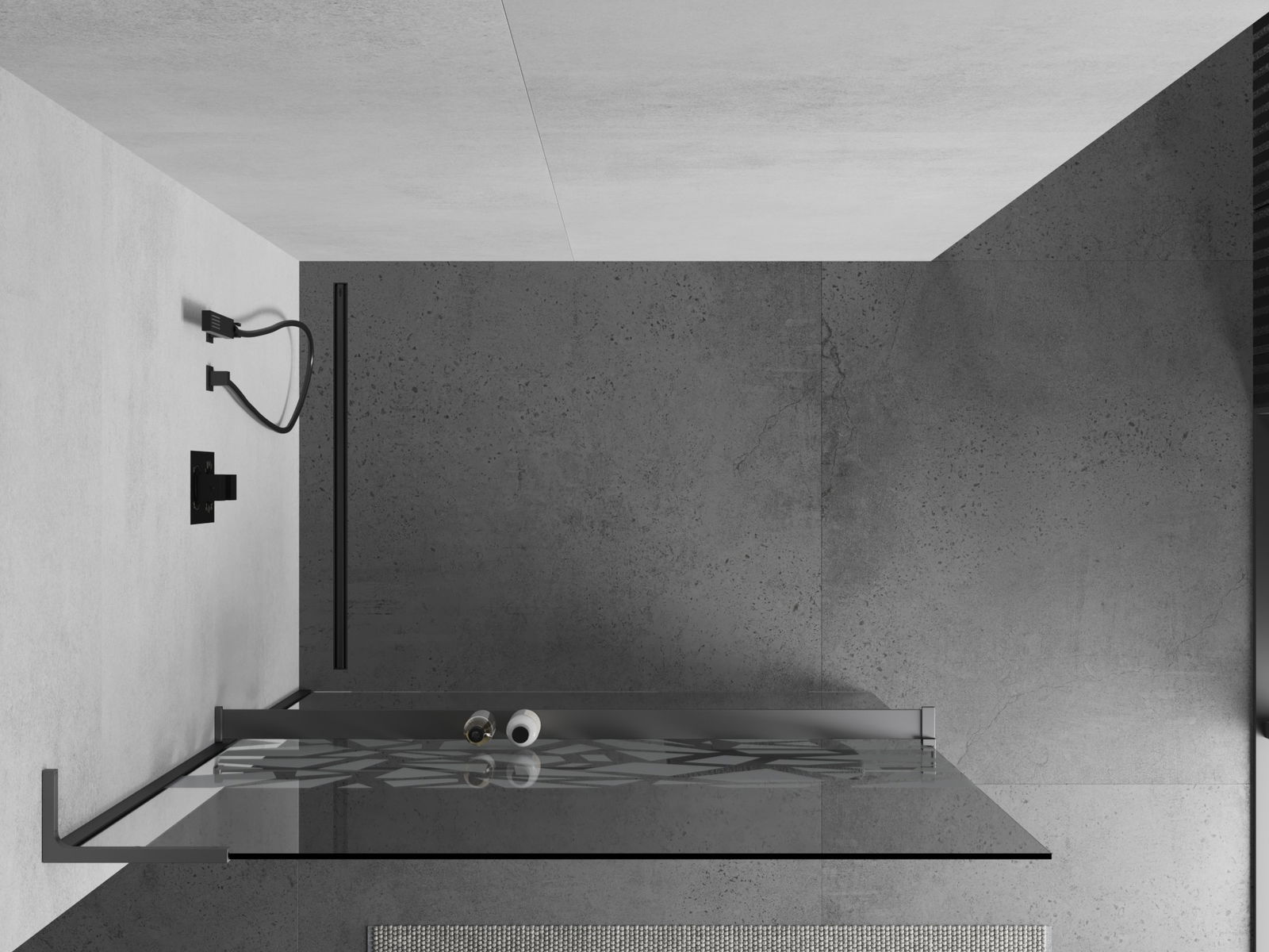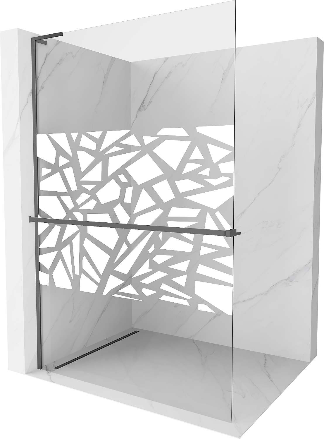 Mexen Kioto+ L Πάνελ ντους με ράφι Walk-in 100 x 200 εκ., λευκό μοτίβο, gun metal
