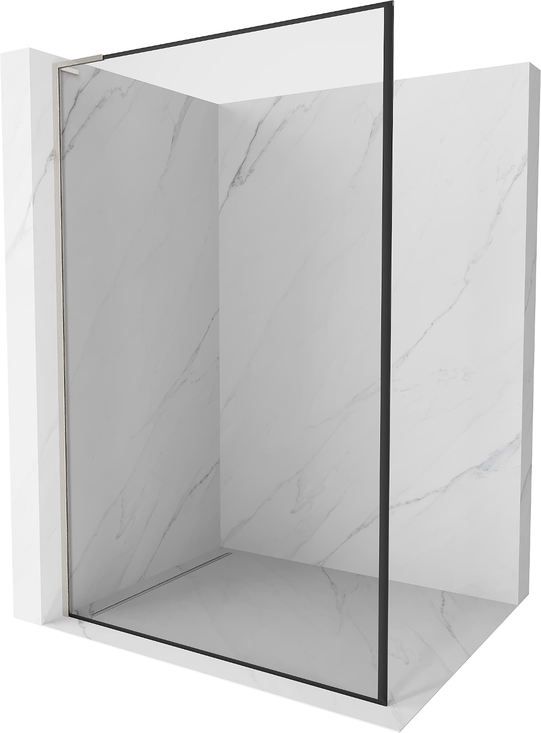 Mexen Kioto L Πάνελ ντους Walk-in 70 x 200 cm, μαύρο πλαίσιο, βουρτσισμένο νικέλιο