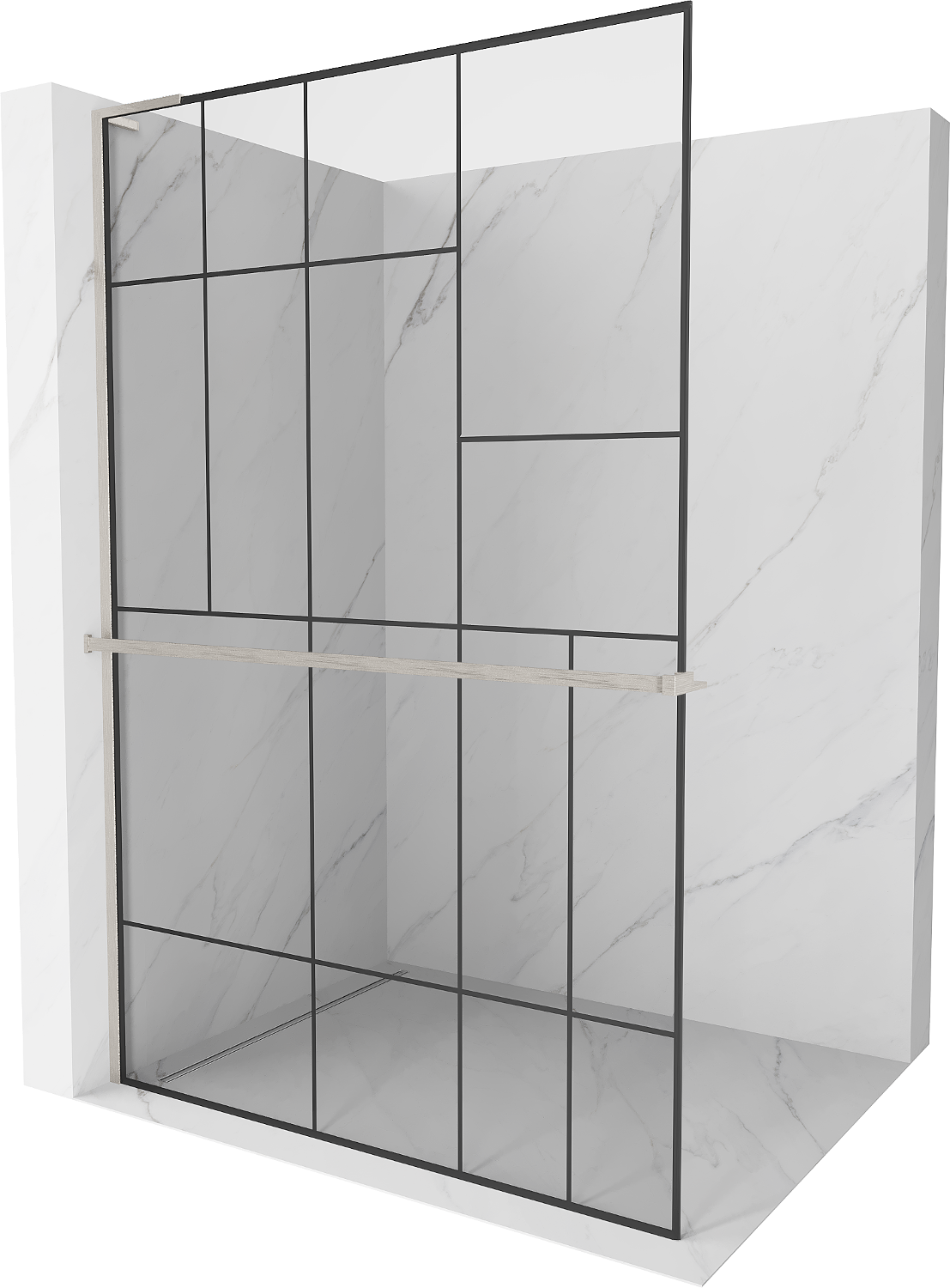 Mexen Kioto+ L παραβάν ντους με ράφι Walk-in 80 x 200 cm, μαύρο σχέδιο, βουρτσισμένο
