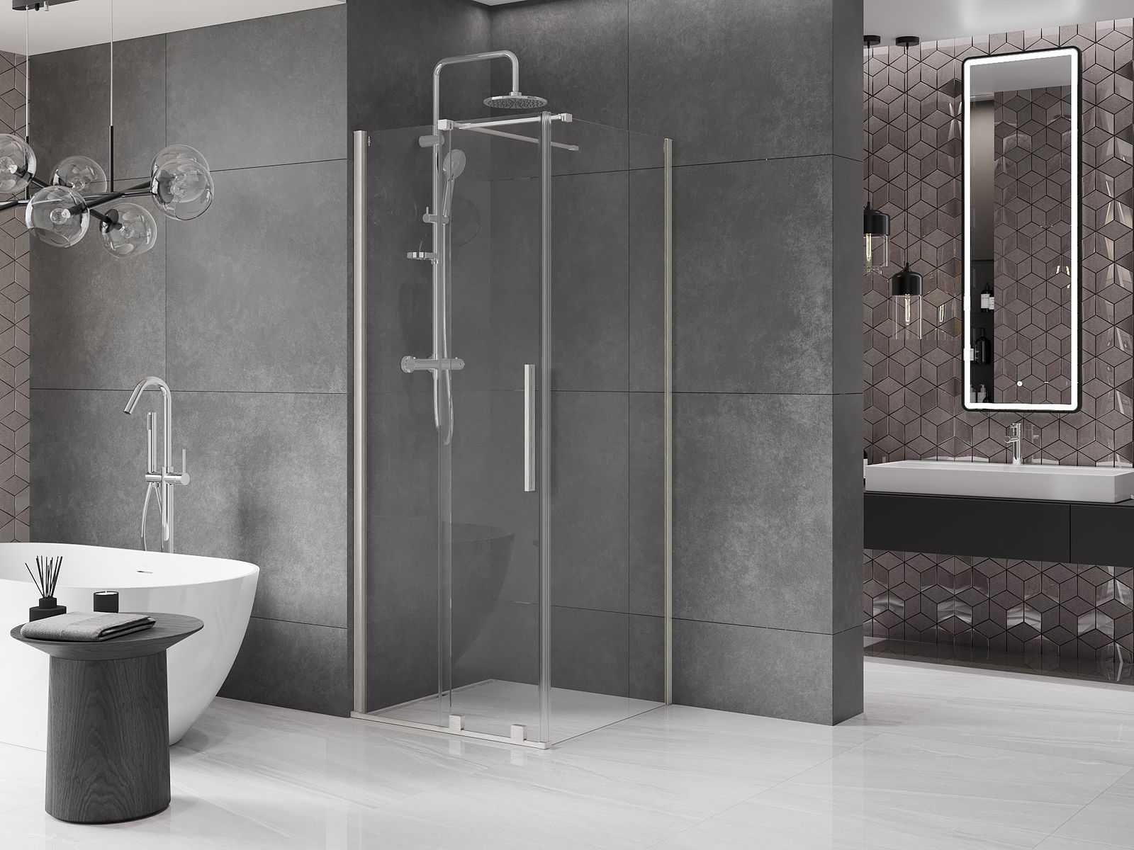 Mexen Velar συρόμενη καμπίνα ντους 110 x 110 cm, διάφανη, βουρτσισμένο νικέλιο