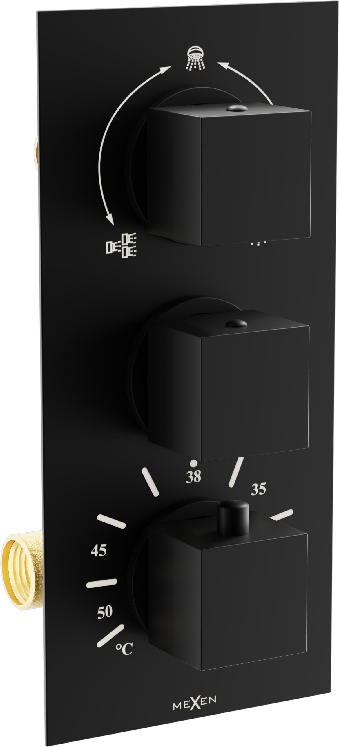 Mexen Cube Θερμοστατική μπαταρία μπανιέρας-ντους 3 εξόδων, μαύρη - 77503-70
