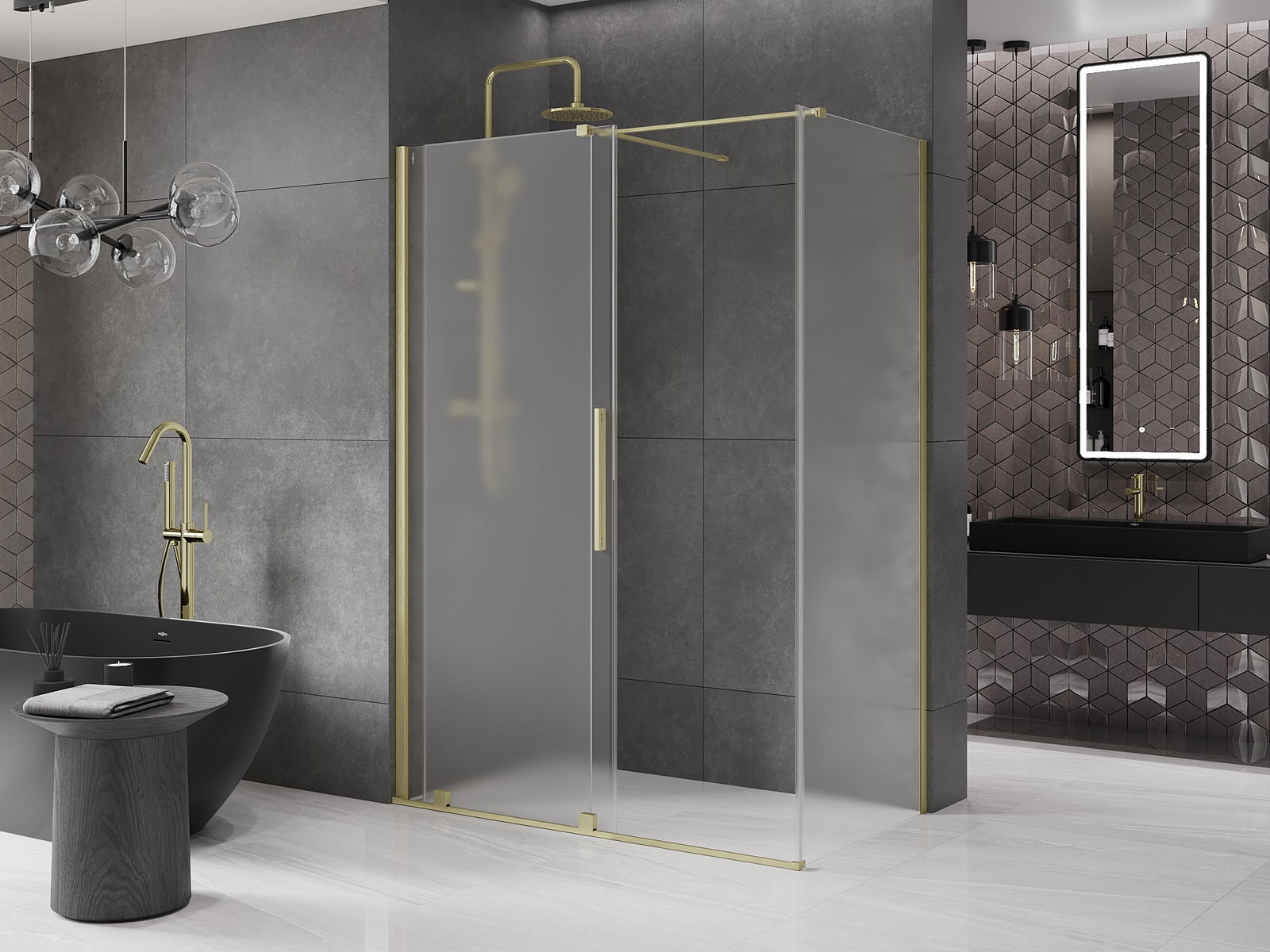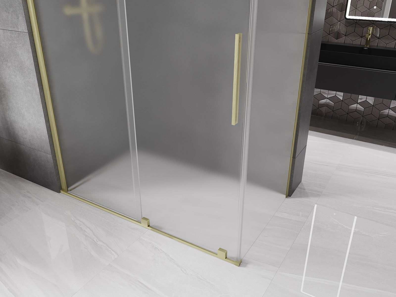Mexen Velar συρόμενη καμπίνα ντους 140 x 75 cm, παγωμένο, βουρτσισμένο χρυσό