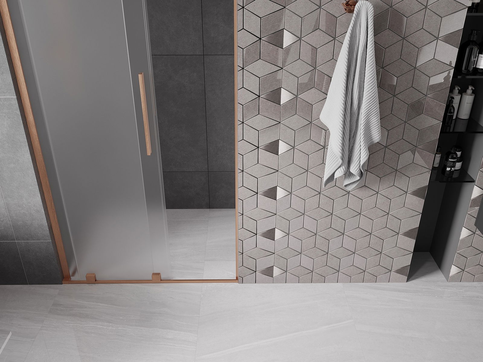 Mexen Velar L συρόμενη πόρτα ντους 110 cm, παγωμένο, βουρτσισμένο χαλκό