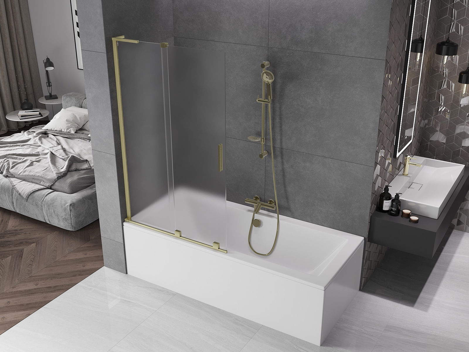 Mexen Velar L παραβάν μπάνιου 2-πτερύγιο συρόμενο 110 x 150 εκ., παγετός, χρυσό