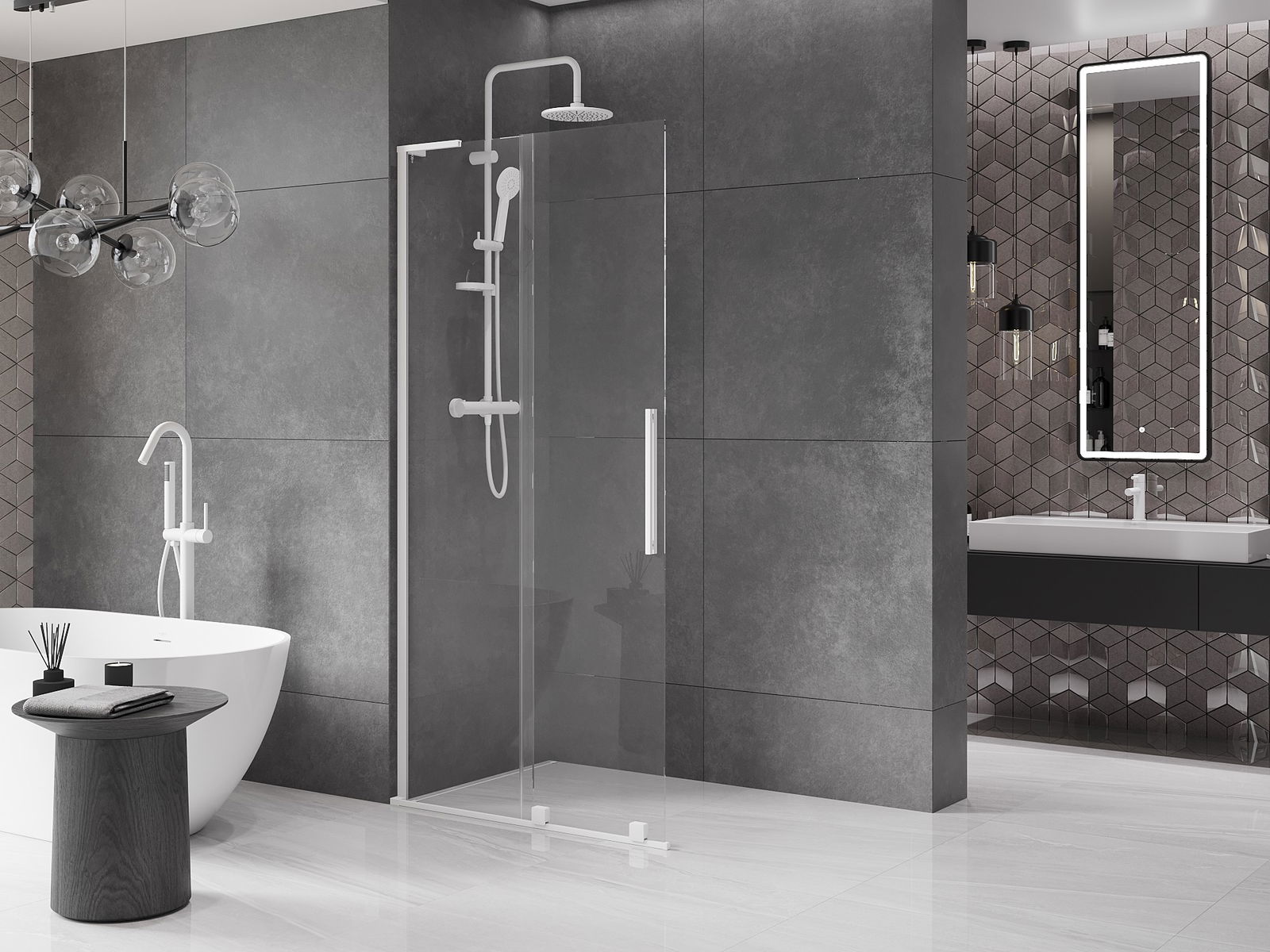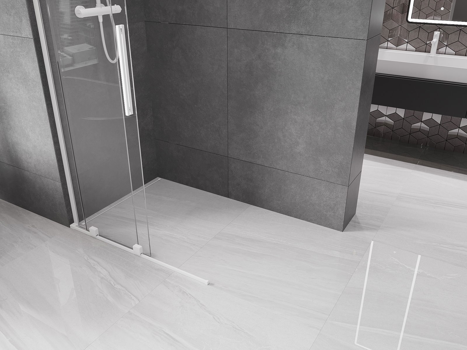 Mexen Velar L Συρόμενο διαχωριστικό ντους Walk-in 90 x 200 cm, διαφανές 8 mm, λευκό