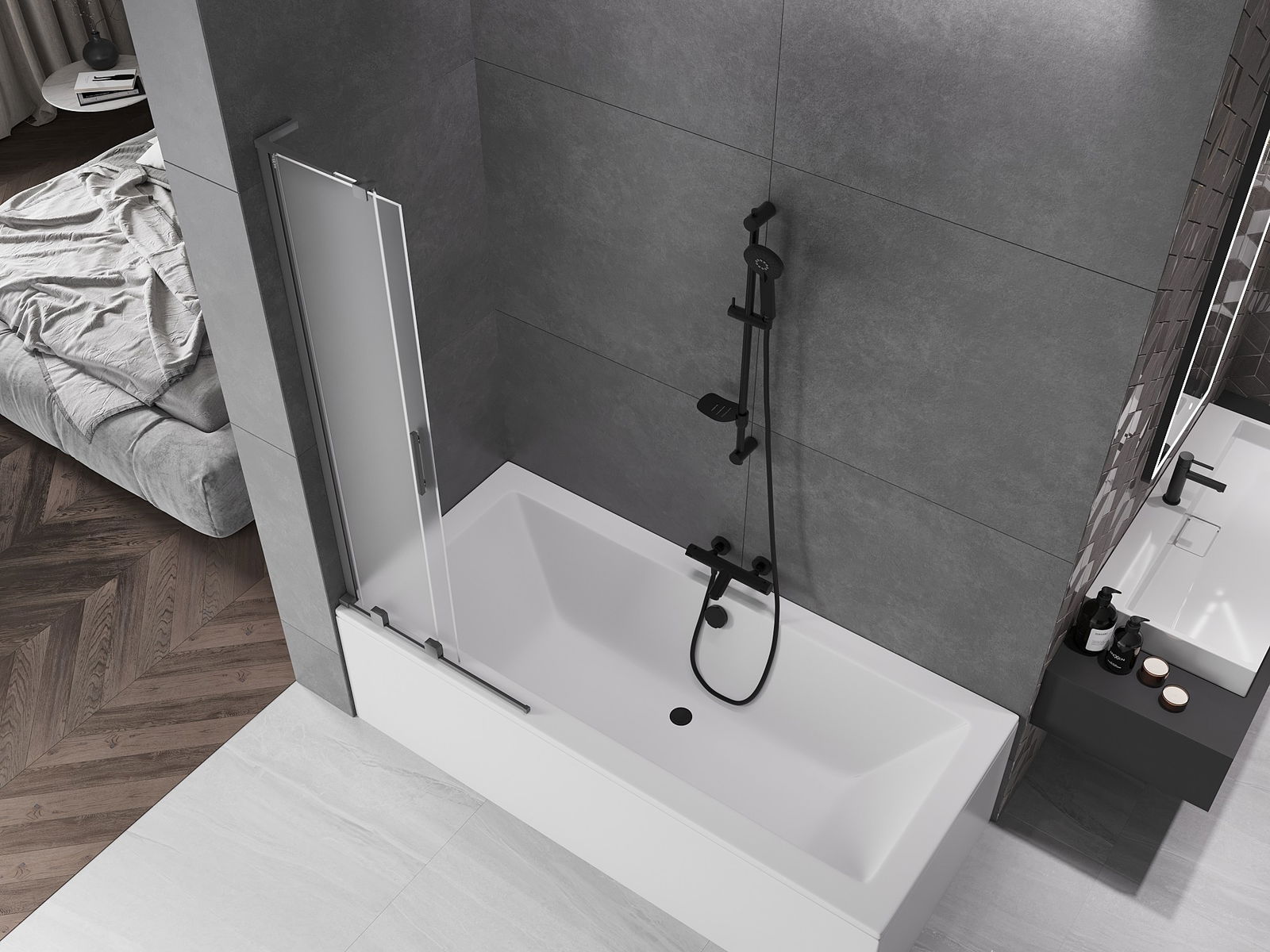 Mexen Velar L διπλού πλαισίου συρόμενη οθόνη μπανιέρας 85 x 150 cm, παγωμένο, gun