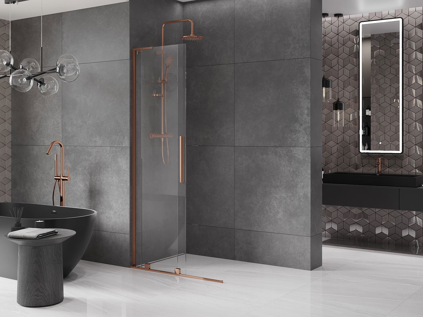 Mexen Velar L Συρόμενος τοίχος ντους Walk-in 110 x 200 cm, διαφανής 8 mm, ροζ χρυσό