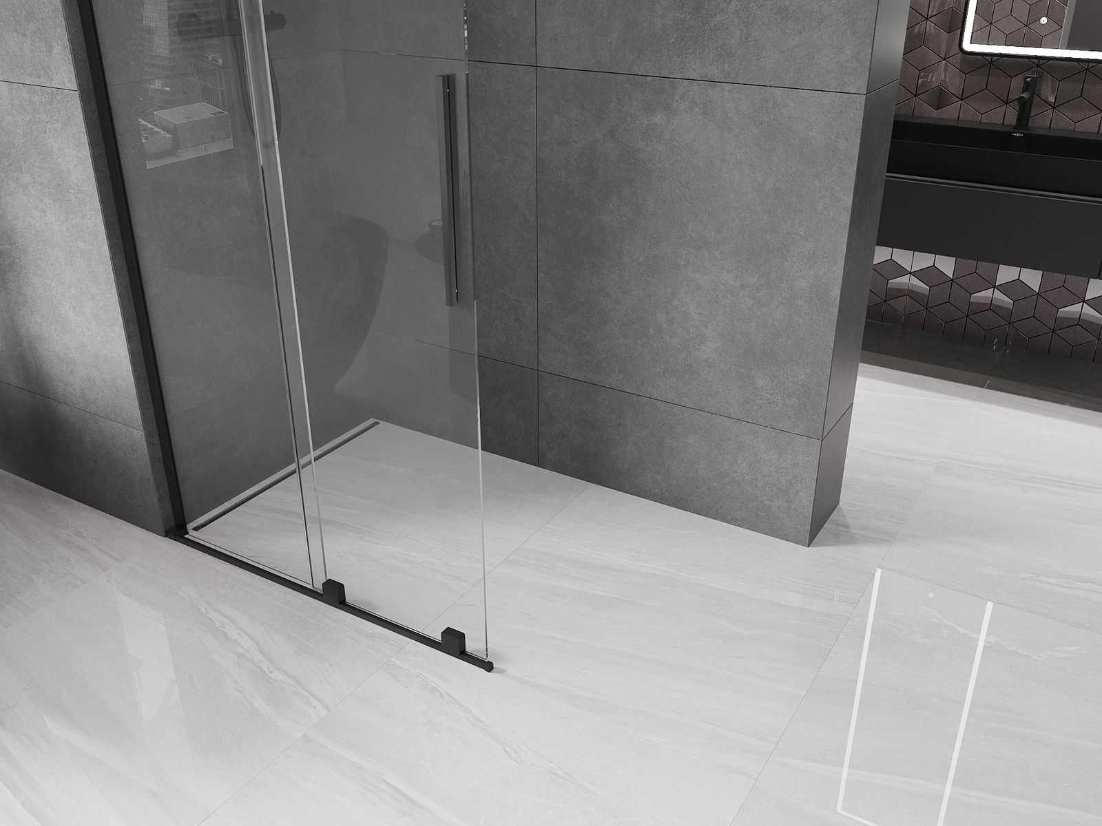 Mexen Velar L συρόμενος πίνακας ντους Walk-in 110 x 200 cm, διαφανής 8 mm, μαύρος