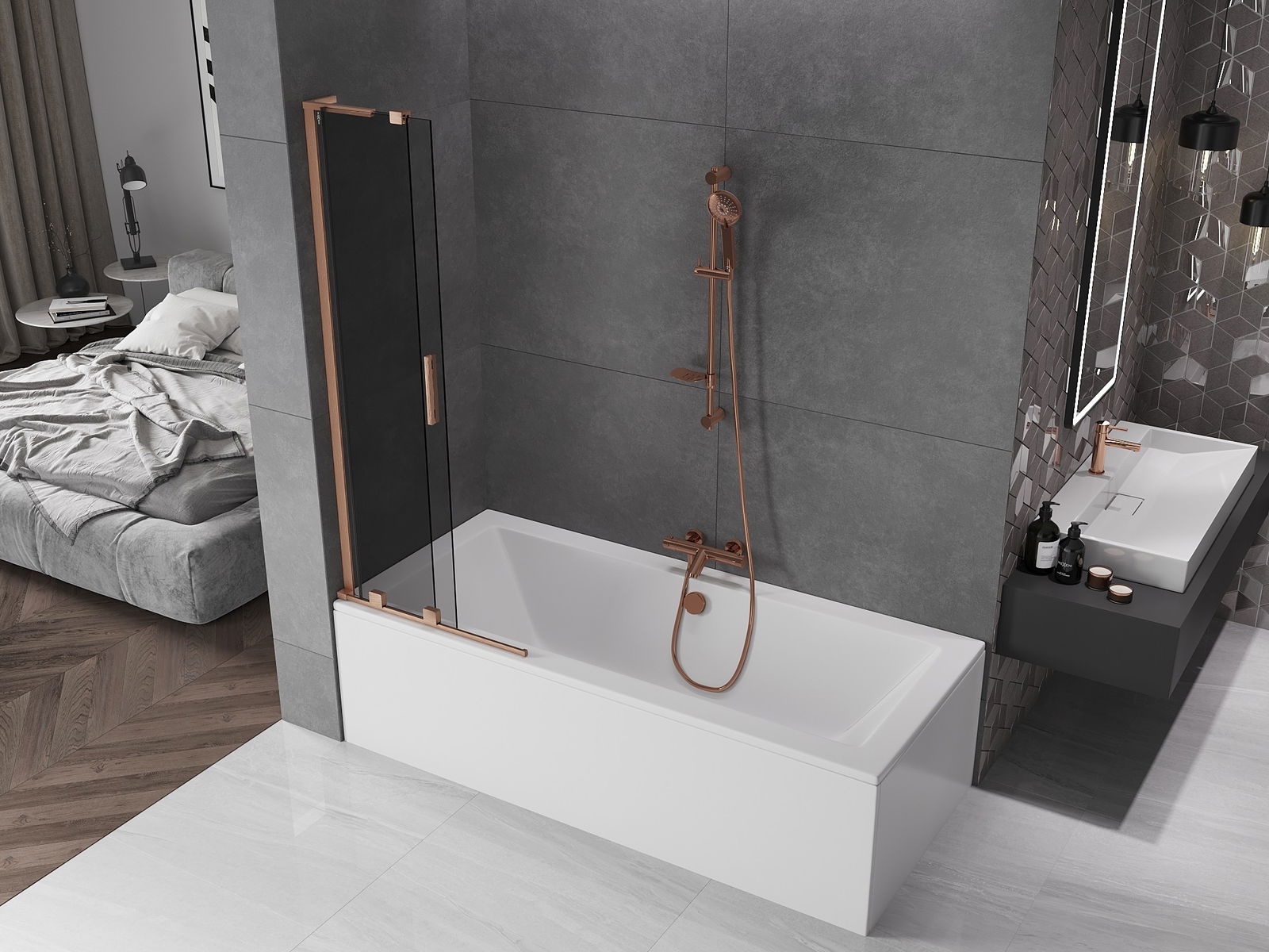Mexen Velar L συρόμενη δίφυλλη οθόνη μπάνιου 70 x 150 cm, γραφίτης,