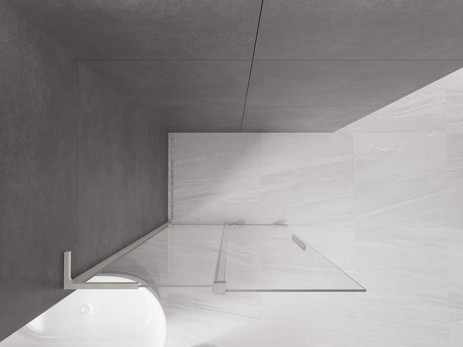 Mexen Velar L συρόμενος τοίχος ντους Walk-in 90 x 200 cm, διαφανές 8 mm, βουρτσισμένο