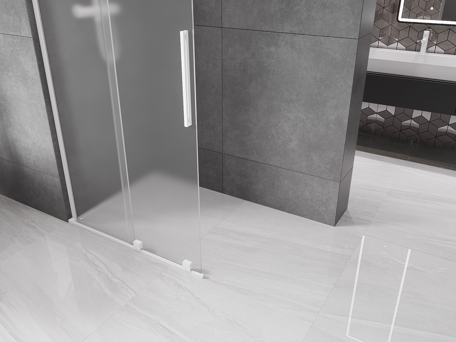 Mexen Velar L συρόμενος τοίχος ντους Walk-in 100 x 200 cm, παγωμένο 8 mm, λευκός