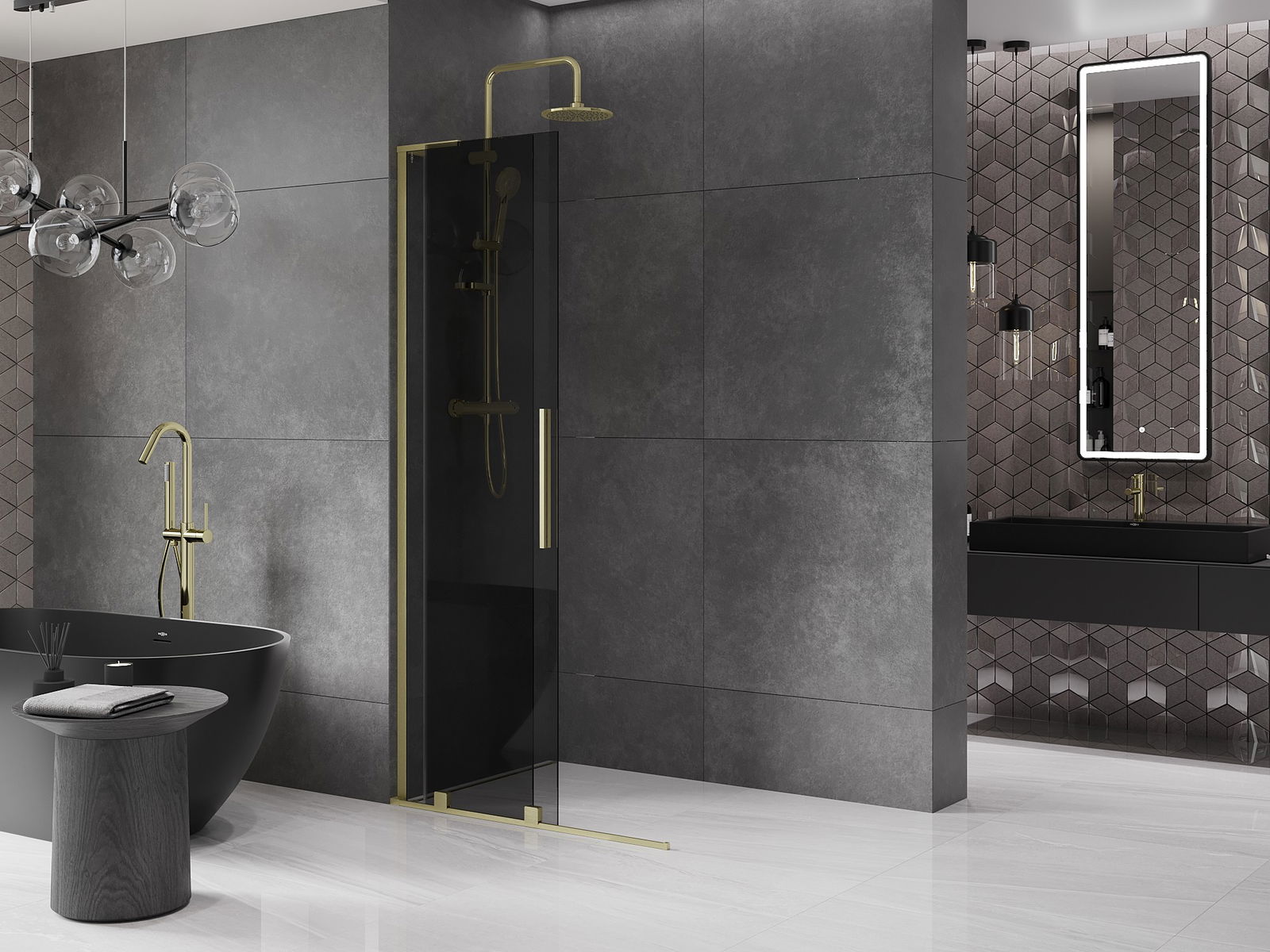 Mexen Velar L Συσρόμενος τοίχος ντους Walk-in 120 x 200 cm, γραφίτης 8 mm, χρυσός