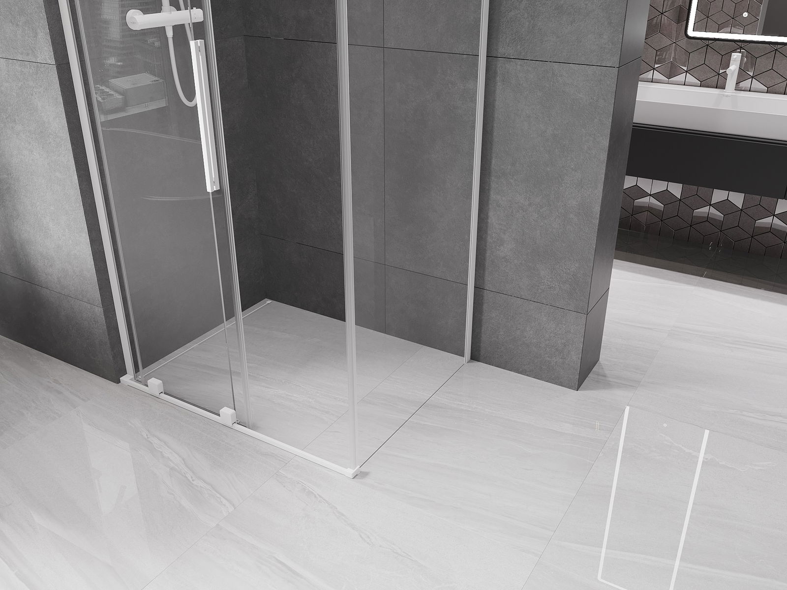 Mexen Velar L συρόμενη καμπίνα ντουζ 90 x 70 cm, διάφανη, λευκή - 871-090-070-03-20