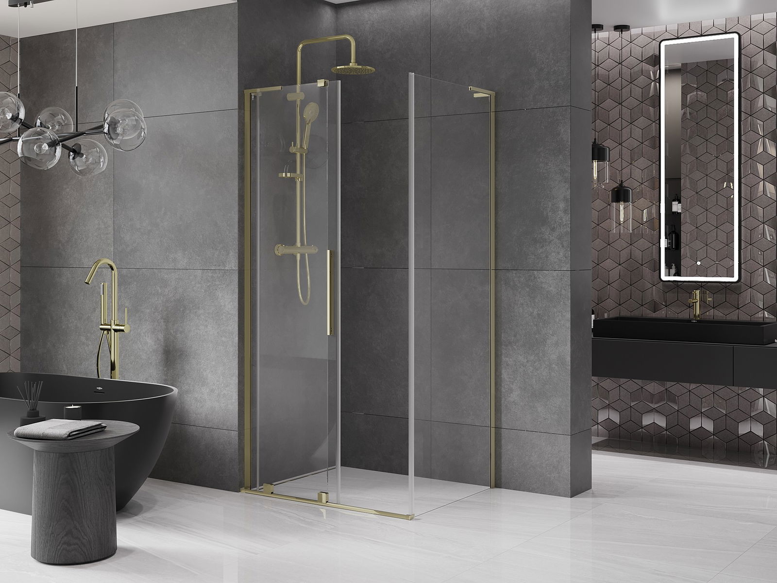 Η πρακτική και άνετη λαβή είναι κατασκευασμένη από ανοξείδωτο ατσάλι. Ο μοντέρνος σχεδιασμός σε συνδυασμό με το φινίρισμα που ταιριάζει με το χρώμα των προφίλ προσδίδει συνολικά μια σύγχρονη και στυλάτη εμφάνιση, υπογραμμίζοντας την αισθητική κάθε μπάνιου.