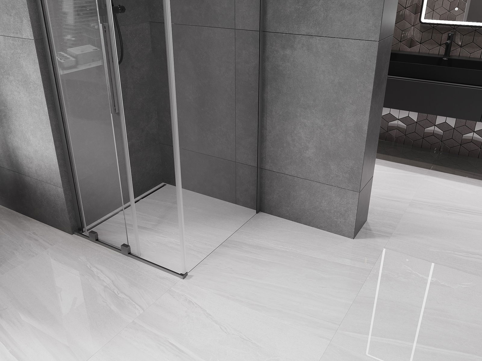 Mexen Velar L συρόμενη καμπίνα ντους 110 x 110 cm, διαφανές, βουρτσισμένο γκρι