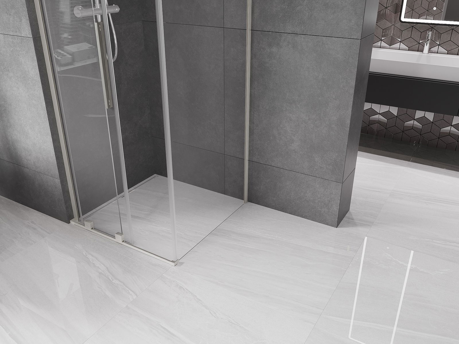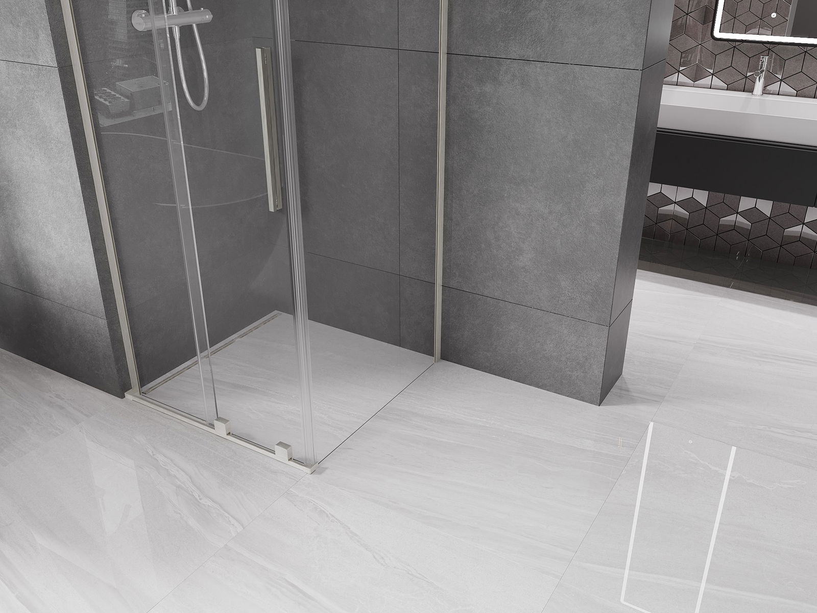 Mexen Velar L συρόμενη ντουσιέρα 100 x 100 cm, διαφανής, βουρτσισμένο νικέλιο