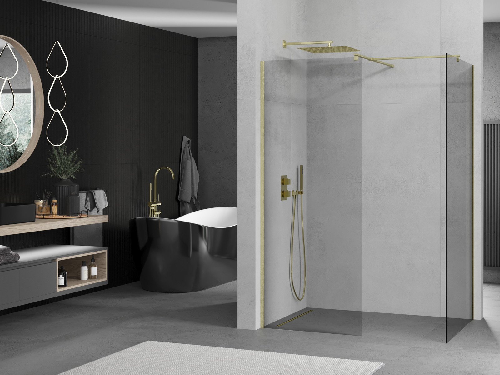 Mexen Kioto Τείχος ντους Walk-in 120 x 90 cm, διαφανές, βουρτσισμένο χρυσό