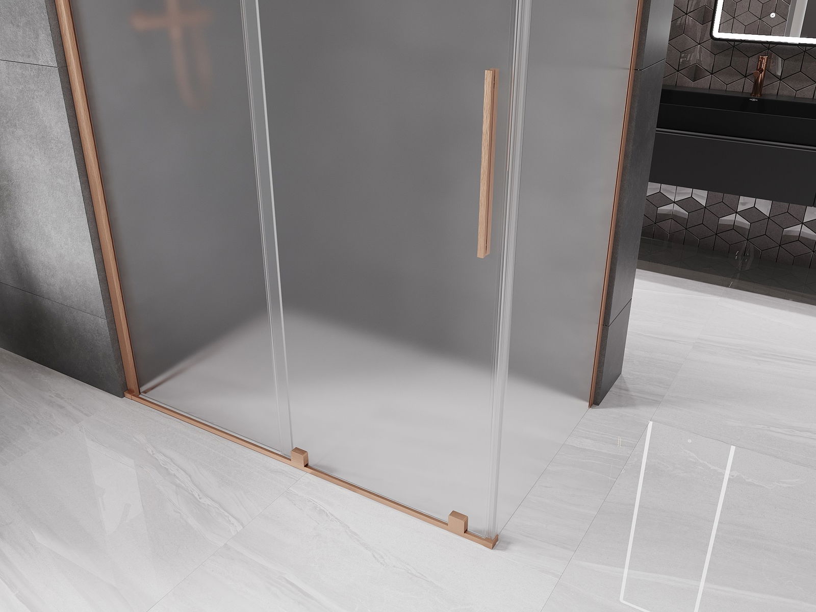 Mexen Velar συρόμενη καμπίνα ντους 140 x 70 cm, παγετώνας, βουρτσισμένο χαλκό