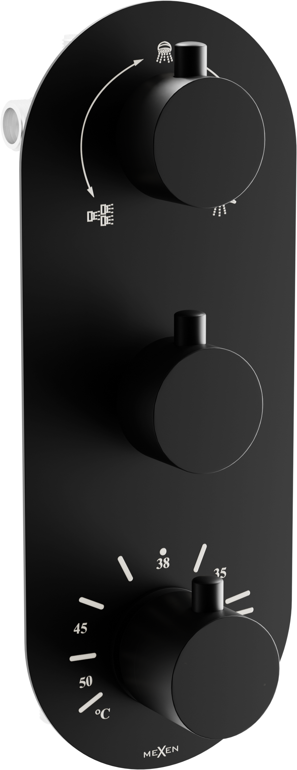 Mexen Kai θερμοστατική μπαταρία μπανιέρας-ντους 3 εξόδων, μαύρη - 77603-70