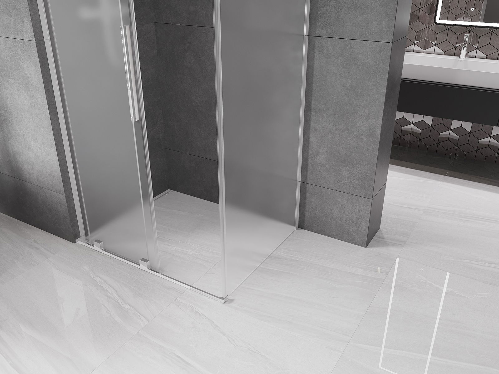 Mexen Velar L συρόμενη ντουζιέρα 90 x 85 cm, ματ, χρώμιο - 871-090-085-33-01