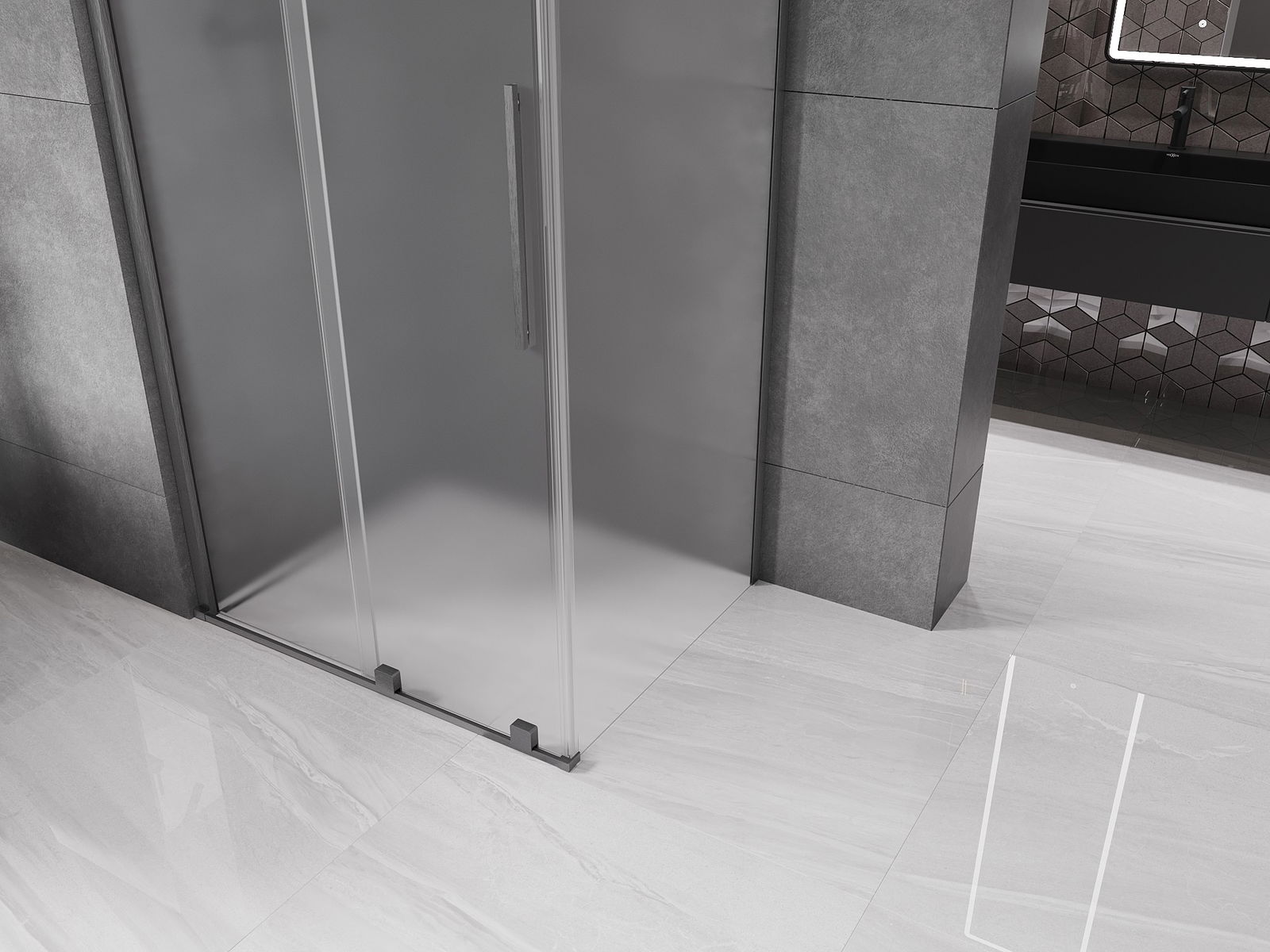 Mexen Velar Συρόμενη καμπίνα ντους 110 x 80 εκ., παγετός, βουρτσισμένο γκρι