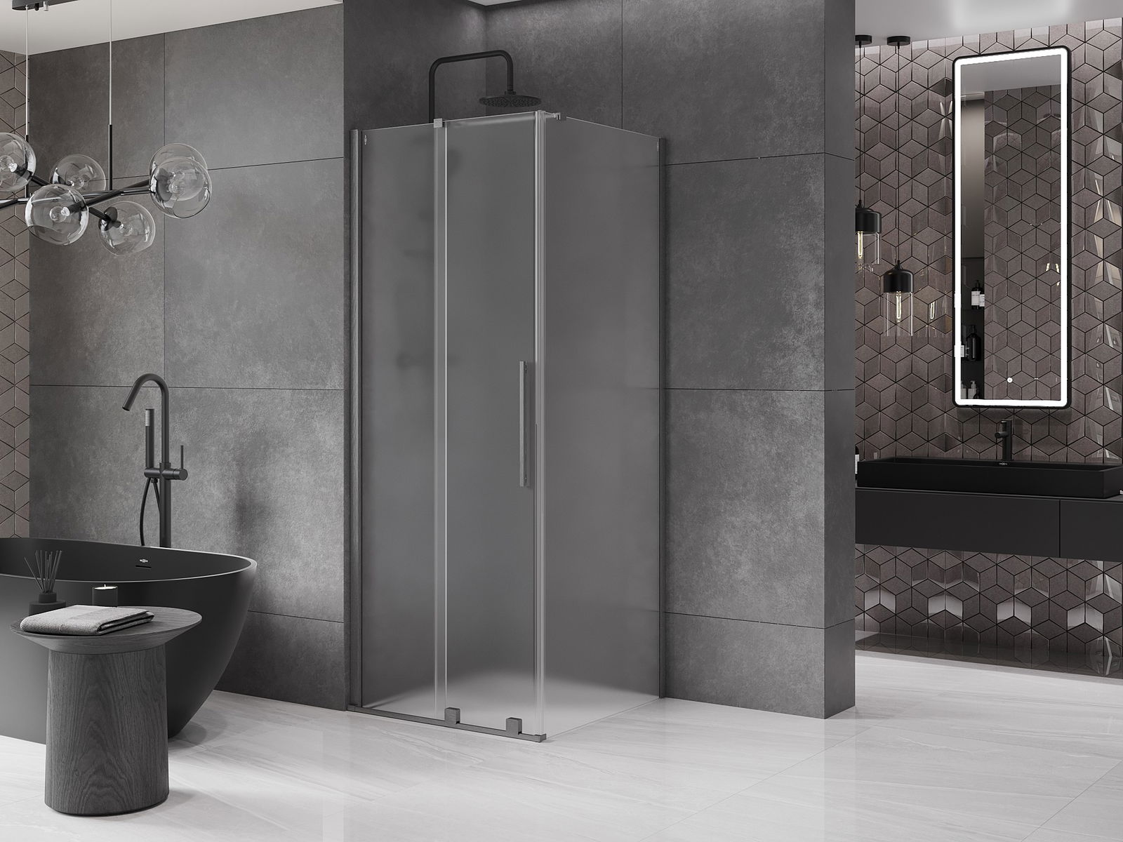 Mexen Velar συρόμενη καμπίνα ντους 110 x 110 cm, παγετός, βουρτσισμένο ανθρακί