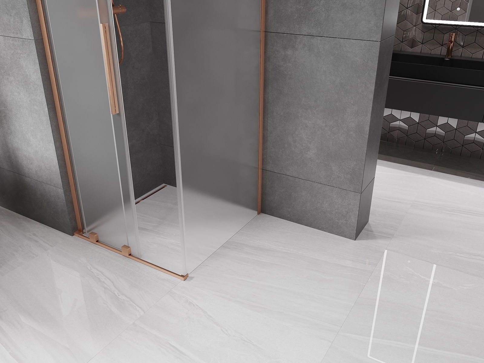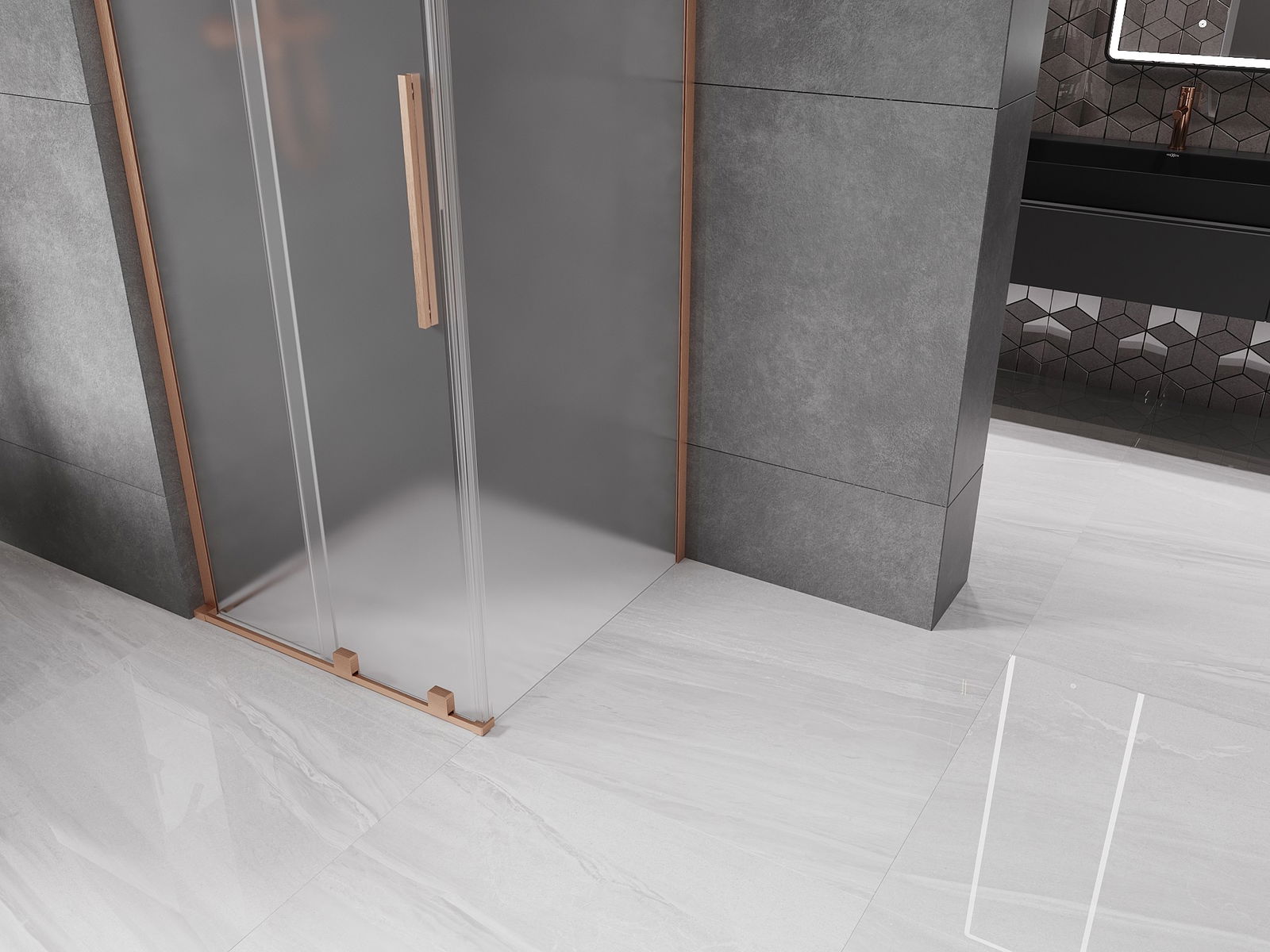 Mexen Velar L Συρόμενη καμπίνα ντους 90 x 90 εκ, παγετός, βουρτσισμένος χαλκός