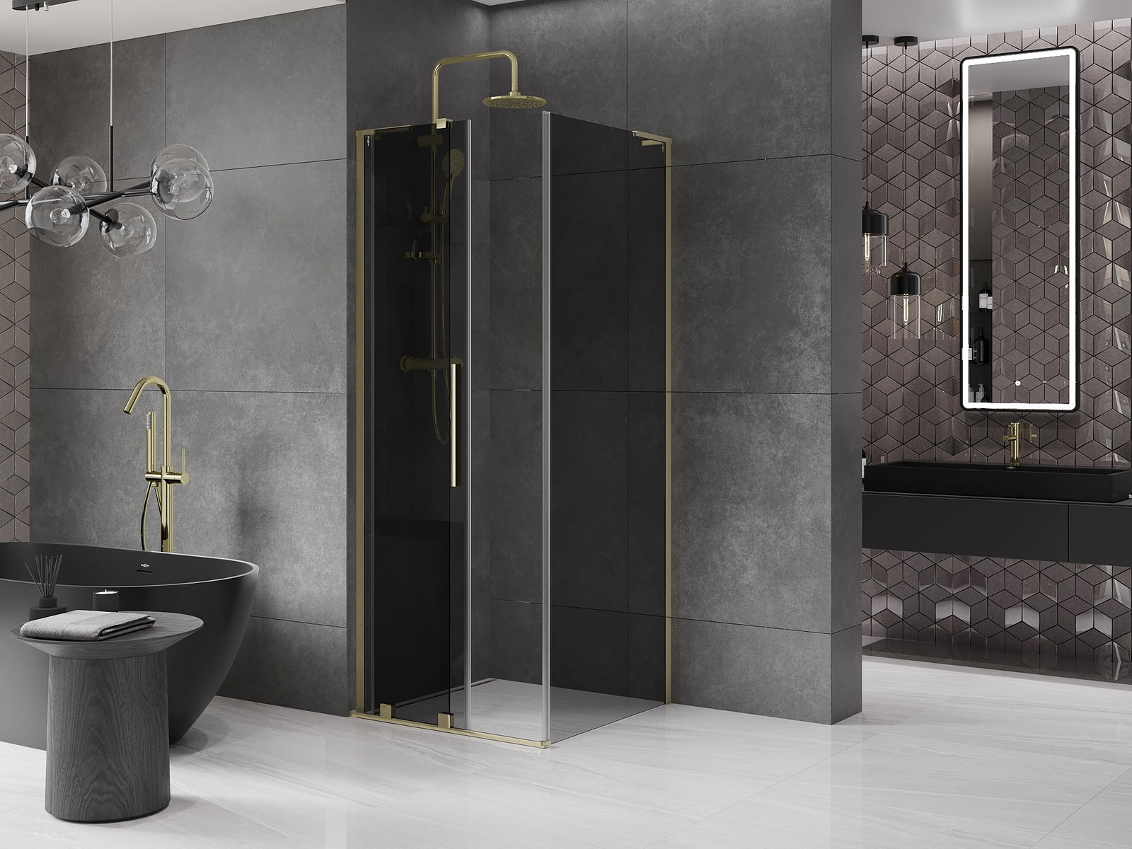 Mexen Velar L καμπίνα ντους συρόμενη 100 x 100 cm, γραφίτης, χρυσή - 871-100-100-43-50