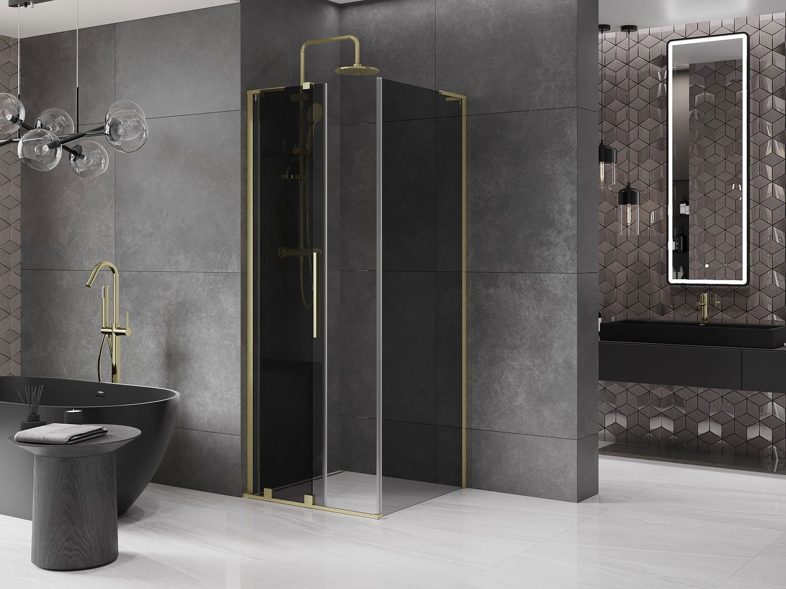Mexen Velar L συρόμενη καμπίνα ντους 90 x 90 εκ., γραφίτης, χρυσό βουρτσισμένο