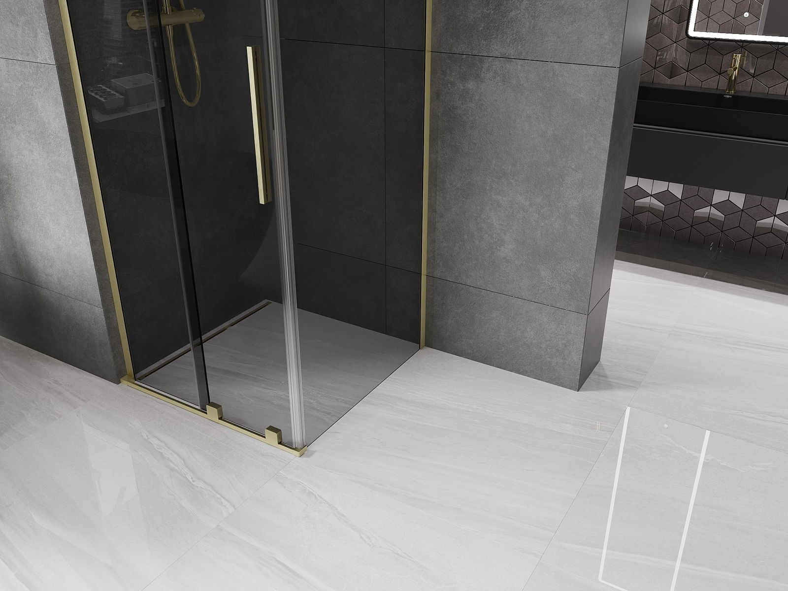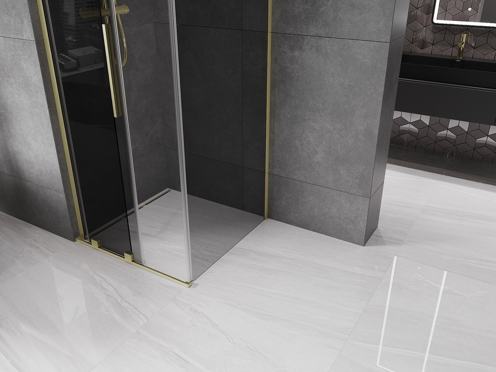 Mexen Velar L συρόμενη καμπίνα ντους 110 x 110 cm, γραφίτης, χρυσή βουρτσισμένη