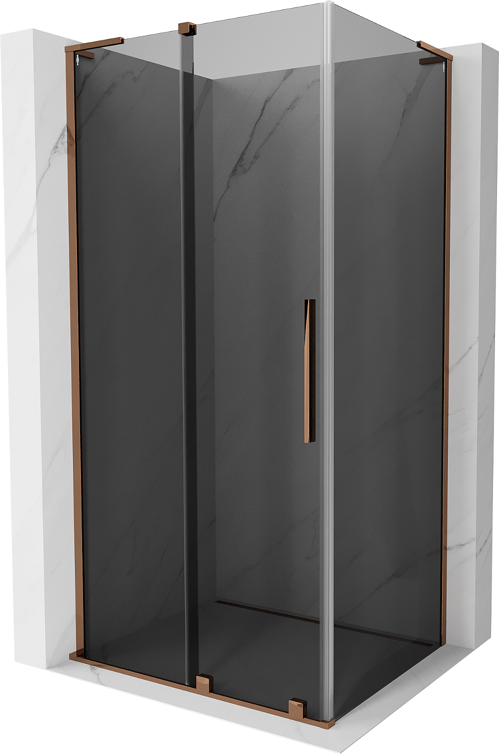 Mexen Velar L συρόμενη καμπίνα ντους 120 x 110 cm, γραφίτης, ροζ χρυσό - 871-120-110-43-60