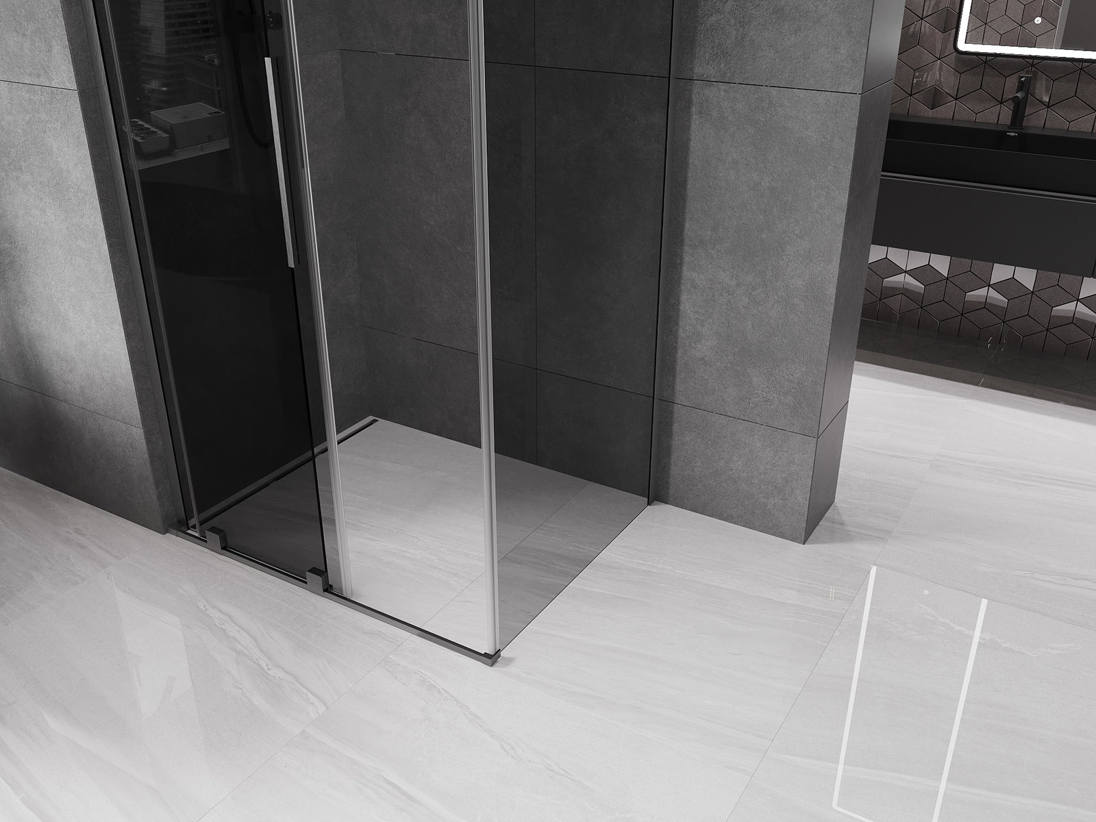 Mexen Velar L καμπίνα ντους συρόμενη 120 x 90 cm, γραφίτης, βουρτσισμένο gun gray