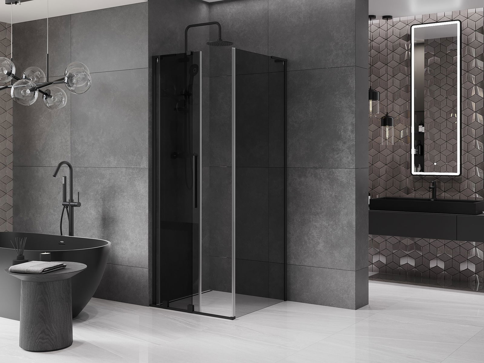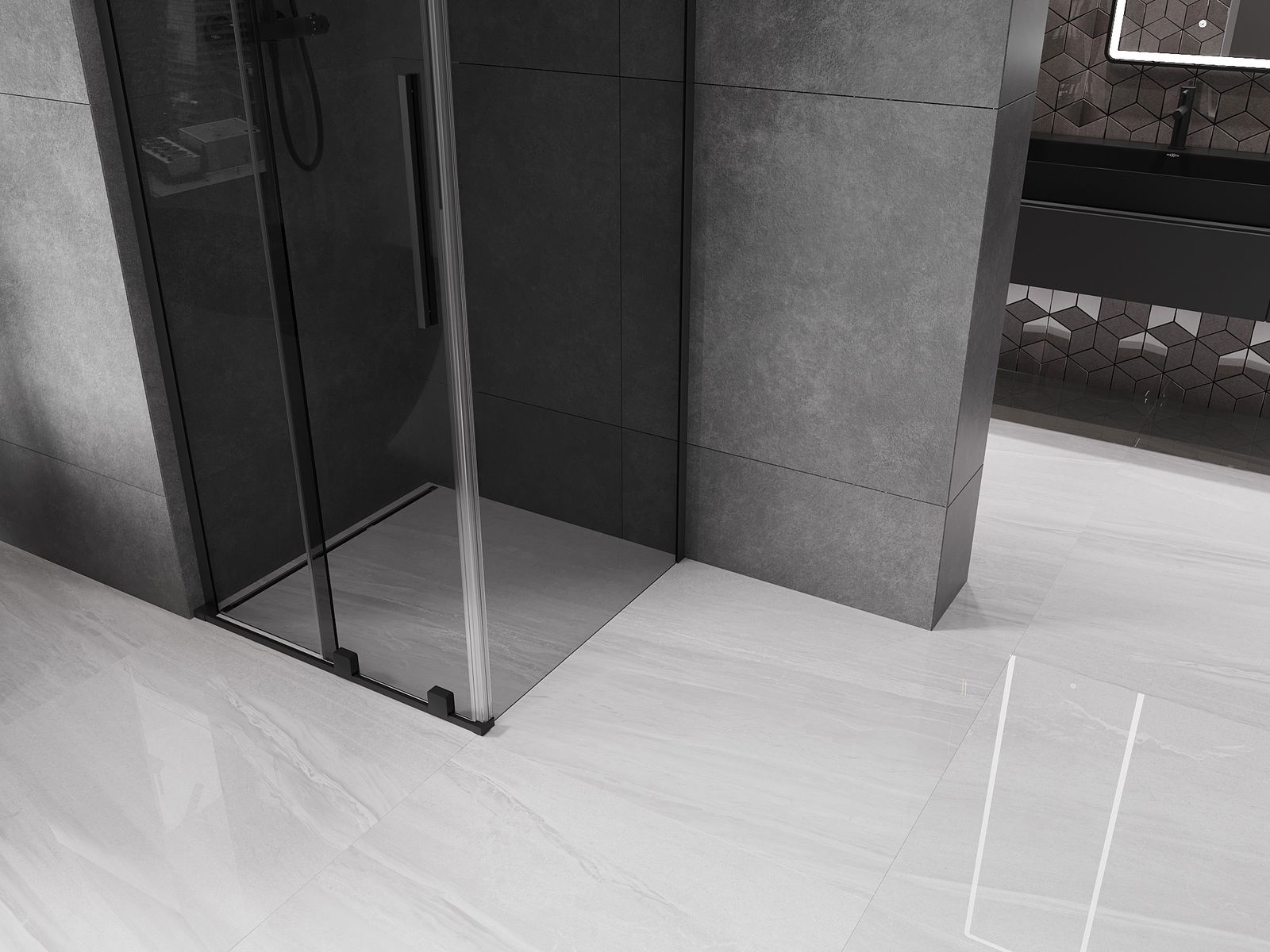 Mexen Velar L καμπίνα ντους συρόμενη 110 x 110 cm, γραφίτης, μαύρη - 871-110-110-43-70