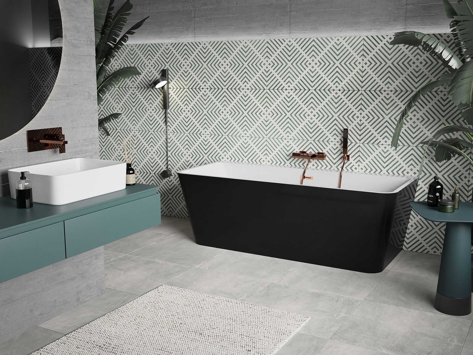 Mexen Volta ελεύθερη μπανιέρα τοποθετημένη στον τοίχο 170 x 75 cm, λευκό/μαύρο,