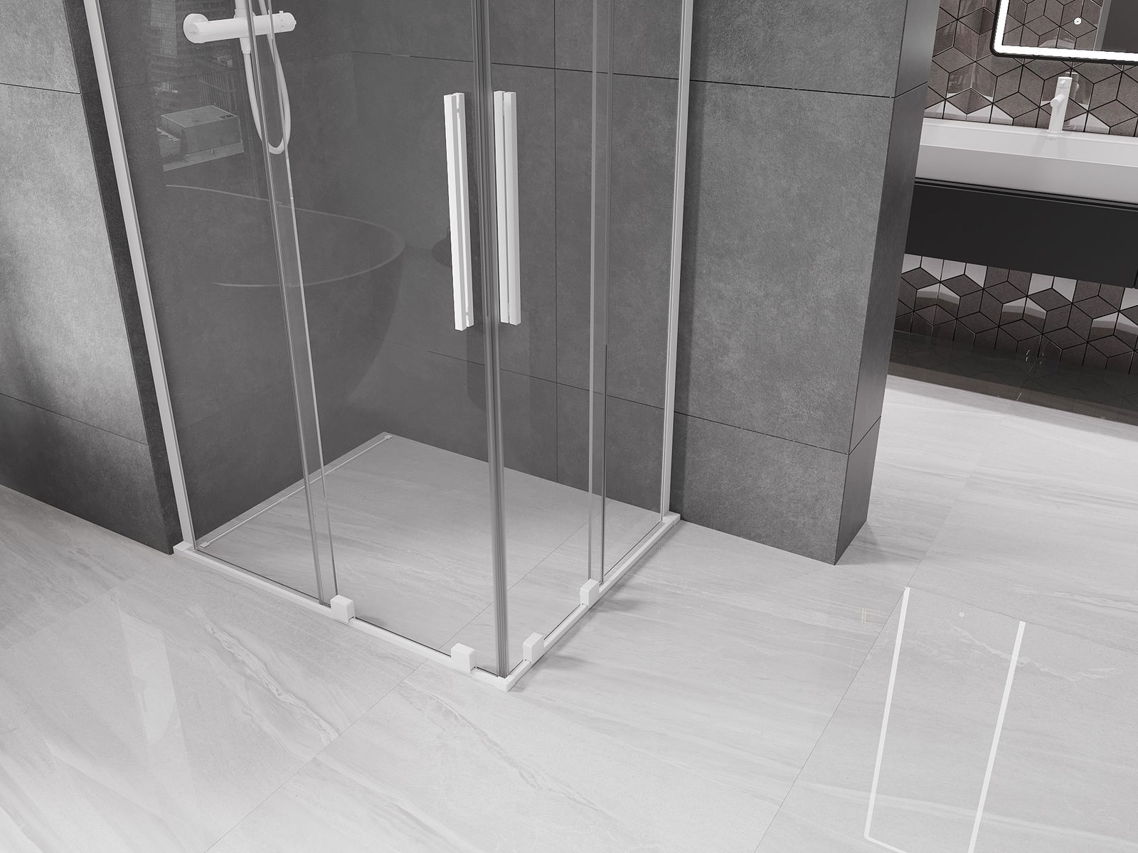 Mexen Velar L Ντουέτα καμπίνα ντους συρόμενη 90 x 80 cm, διαφανής, λευκή