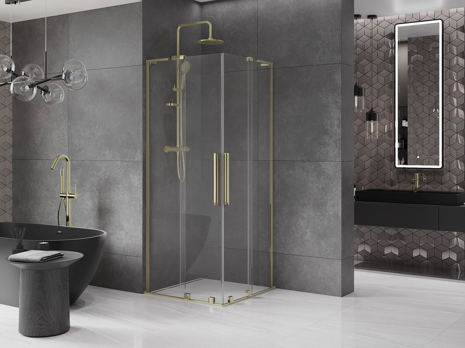 Mexen Velar L Δίδυμο συρόμενο ντους καμπίνας 80 x 80 cm, διάφανο, χρυσό