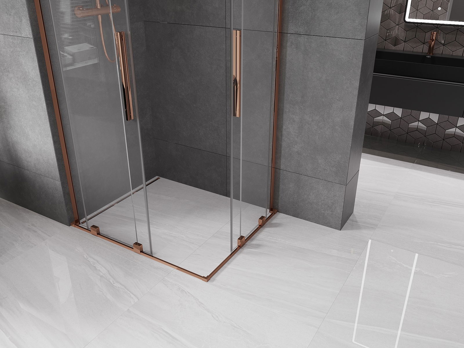 Mexen Velar L Διπλή συρόμενη καμπίνα ντους 90 x 80 cm, διάφανο, ροζ χρυσό