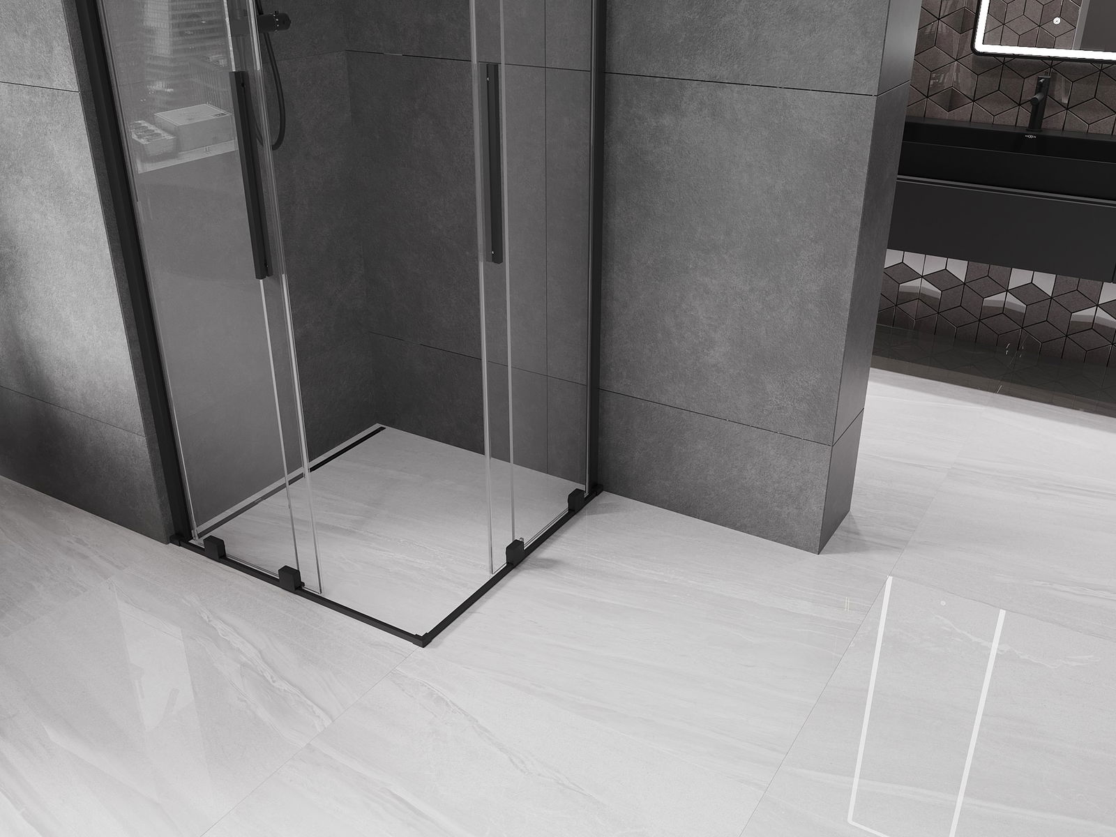 Mexen Velar L Διπλή συρόμενη καμπίνα ντους 100 x 100 cm, διάφανη, μαύρη