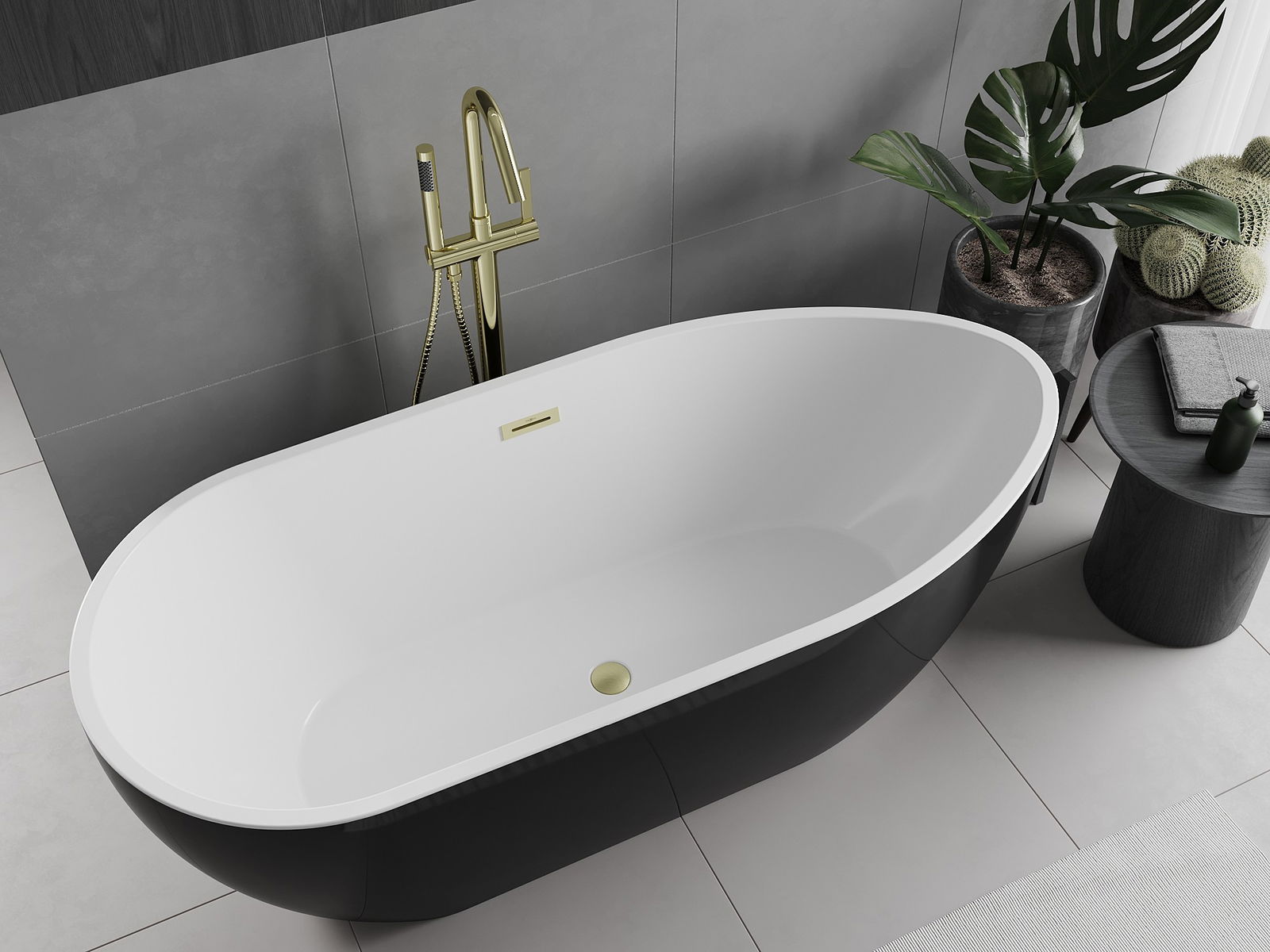 Προσφέρουμε μπανιέρα ελεύθερης τοποθέτησης, διαστάσεων 170 x 75 εκ., σε κομψό συνδυασμό χρωμάτων λευκό και μαύρο, με φινίρισμα χρυσού βουρτσισμένου. Το οβάλ σχήμα της και η υψηλή ποιότητα του ακρυλικού υγιεινής εξασφαλίζουν άνεση και αισθητική στο υψηλότερο επίπεδο. Η μπανιέρα είναι ελεύθερης τοποθέτησης, εύκολη στην εγκατάσταση και διαθέτει αποχέτευση τοποθετημένη στο κέντρο. Επιπλέον, σχεδιάστηκε με τη σκέψη στην αντοχή στη φθορά και την υπεριώδη ακτινοβολία, που εγγυάται μακροχρόνια χρήση χωρίς απώλεια ποιότητας.