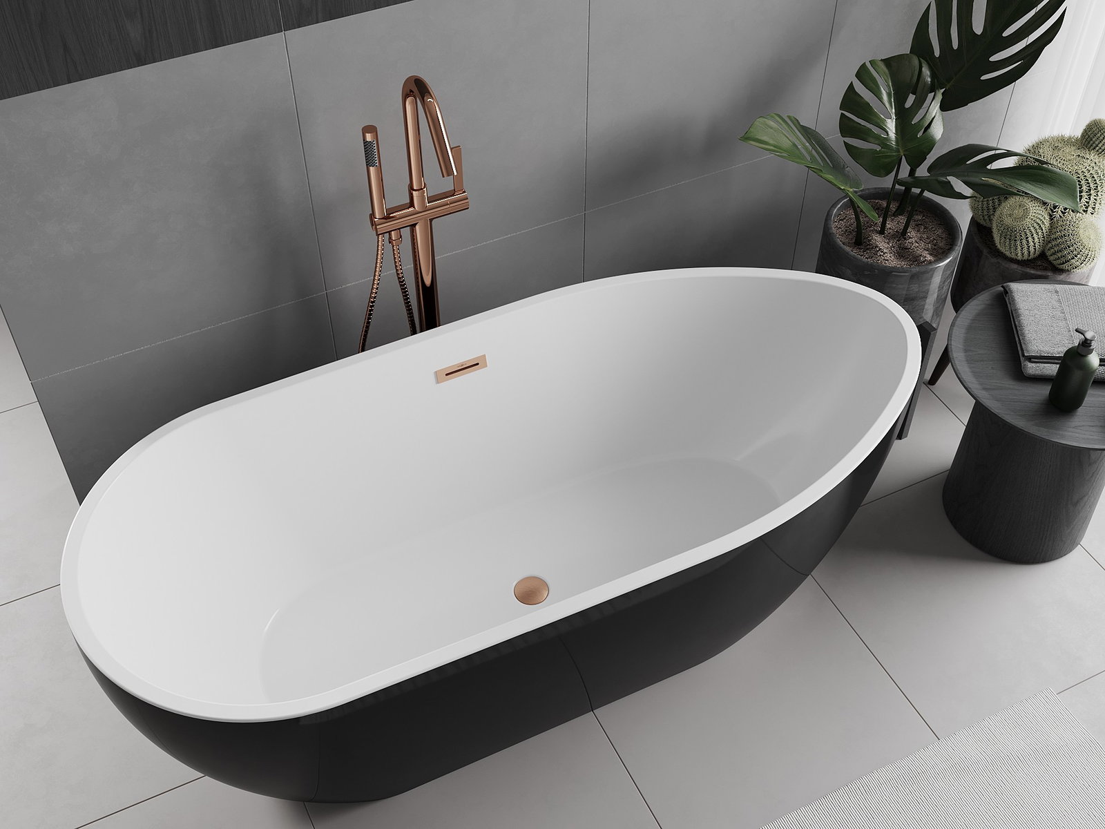 Mexen Eos μπανιέρα ελεύθερης τοποθέτησης 170 x 75 cm, λευκή/μαύρη, υπερχείλιση