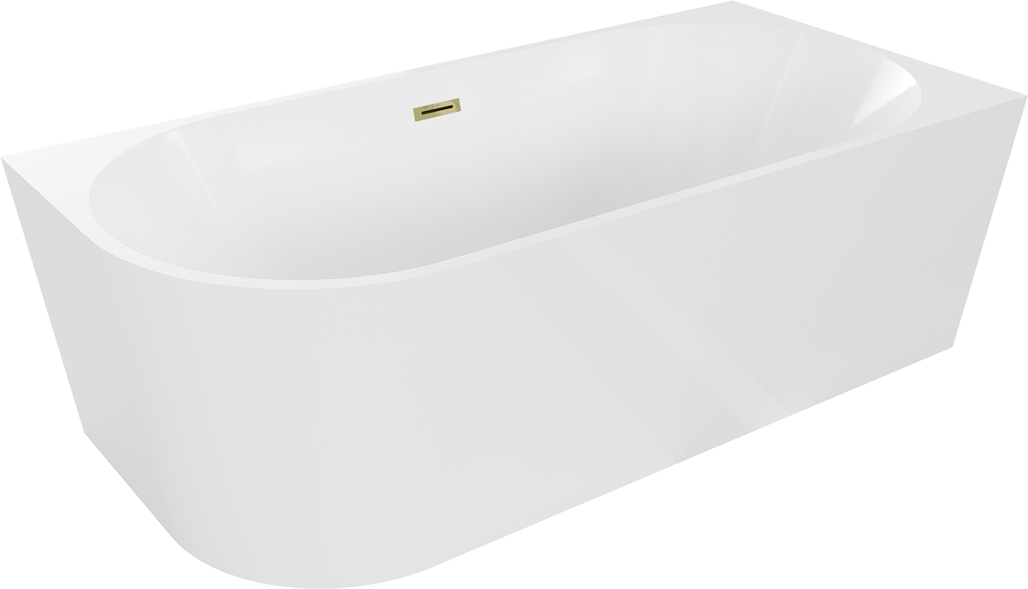 Mexen Mia ελεύθερη γωνιακή δεξιά μπανιέρα 150 x 75 cm, λευκή, υπερχείλιση χρυσή
