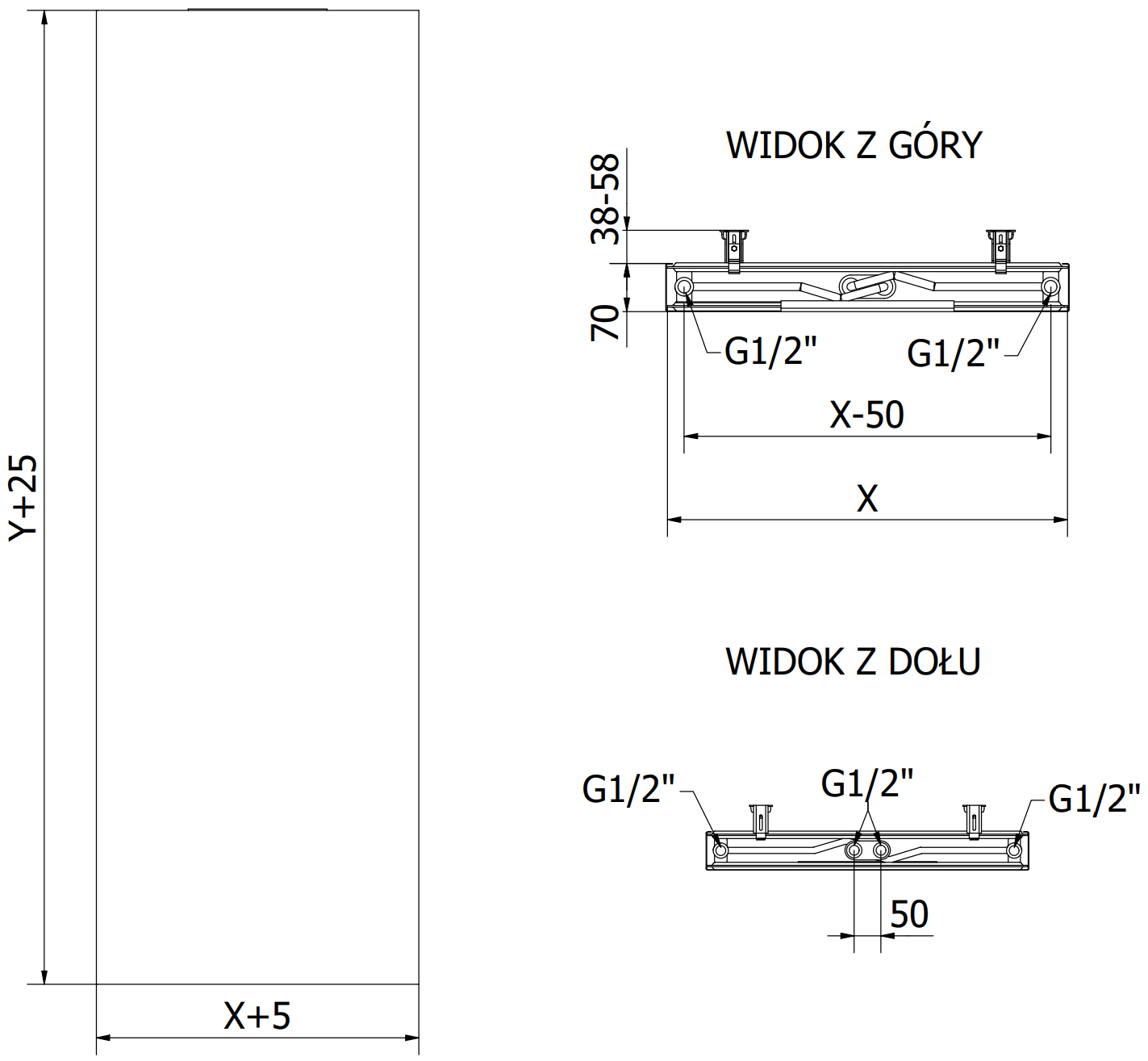 Απόσταση κατακόρυφων καναλιών νερού: 33,3 mm