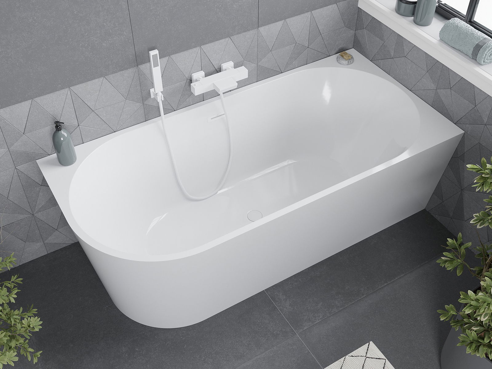 Η Mexen Mia είναι μια κομψή αυτόνομη γωνιακή μπανιέρα με διαστάσεις 180 x 80 cm, που ταιριάζει τέλεια σε κάθε μπάνιο. Κατασκευασμένη από υψηλής ποιότητας ακρυλικό υγιεινής, χαρακτηρίζεται από ανθεκτικότητα σε θάμπωμα και υπεριώδη ακτινοβολία. Το λευκό χρώμα και η γυαλιστερή επιφάνεια της προσδίδουν κομψότητα. Η μπανιέρα διαθέτει τρύπα υπερχείλισης και προορίζεται για εγκατάσταση στη δεξιά γωνία. Στη συσκευασία περιλαμβάνονται το σιφόνι και η τάπα κλικ κλακ, εξασφαλίζοντας πλήρη προετοιμασία για εγκατάσταση.